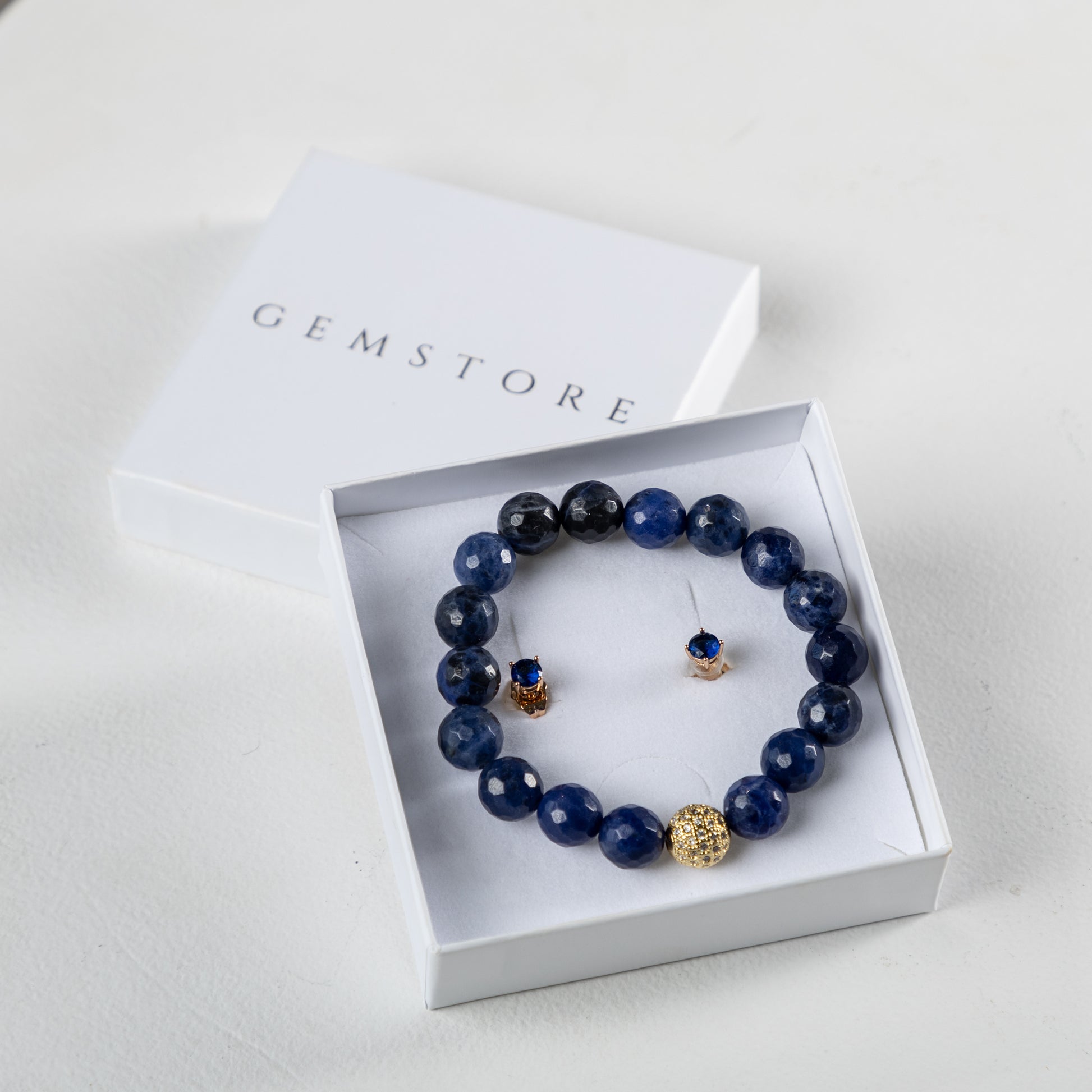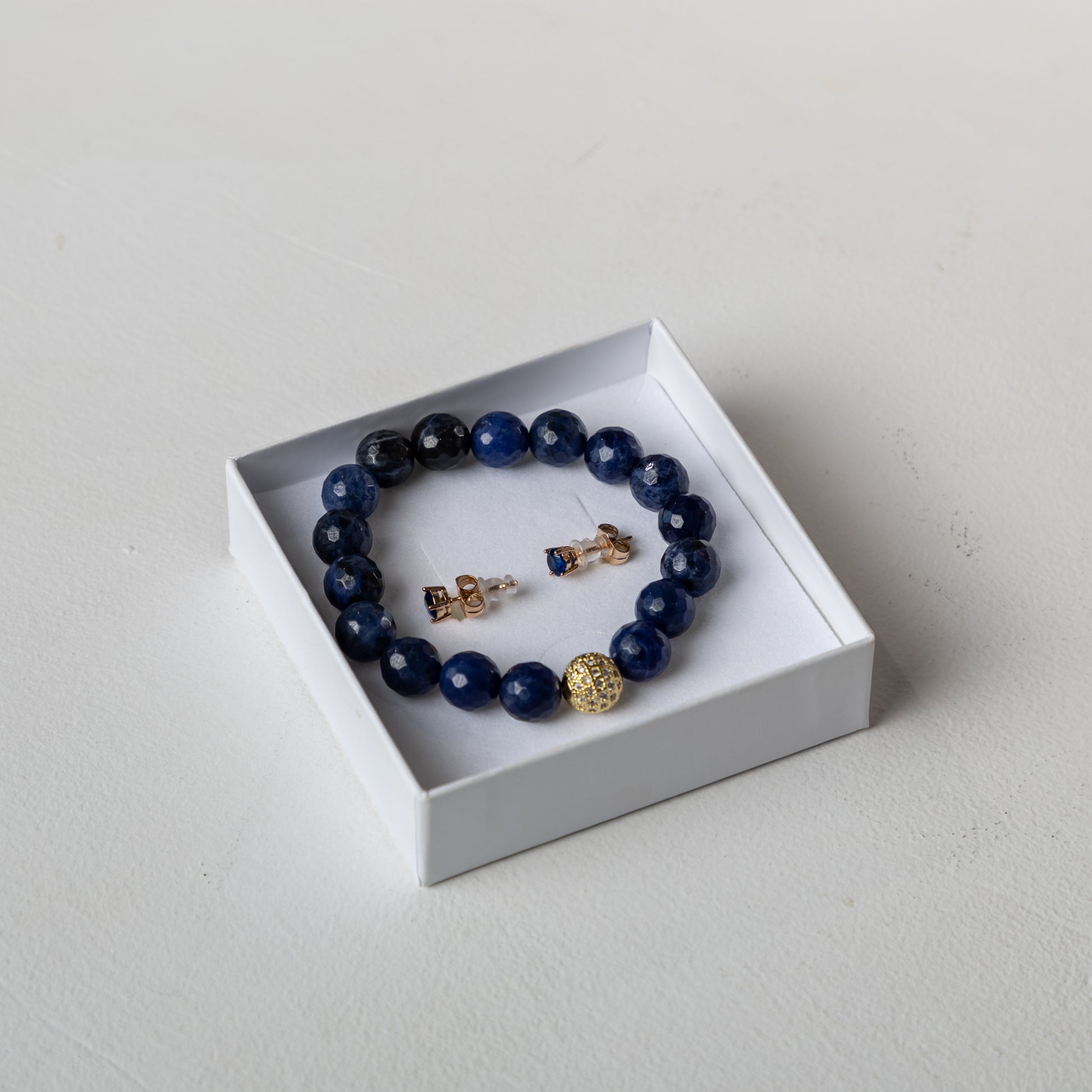 Sodalite bracelet set with decorative crystals earrings