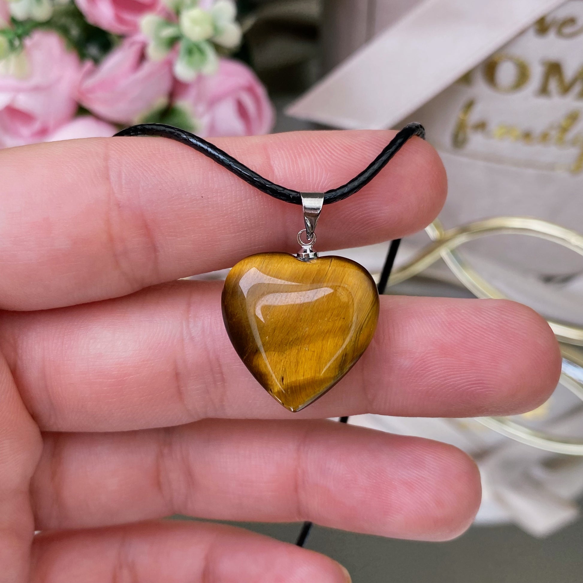 This Tiger Eye pendant "Heart" is crafted with semi-precious stones, perfect for adding a luxe touch to any outfit. The healing and protective properties of Tiger Eye aid in mental clarity and grounding, making it a perfect accessory for those seeking spiritual balance.