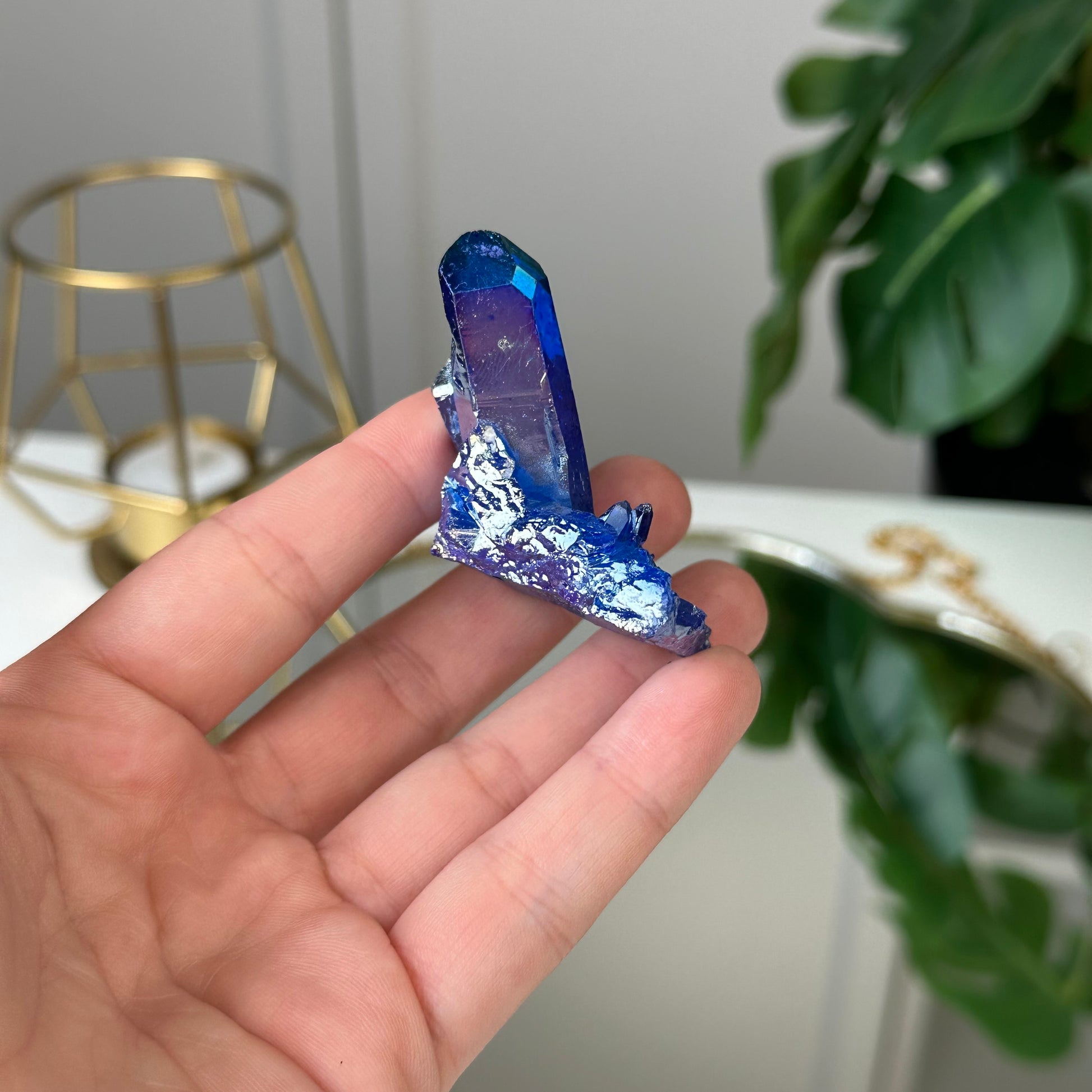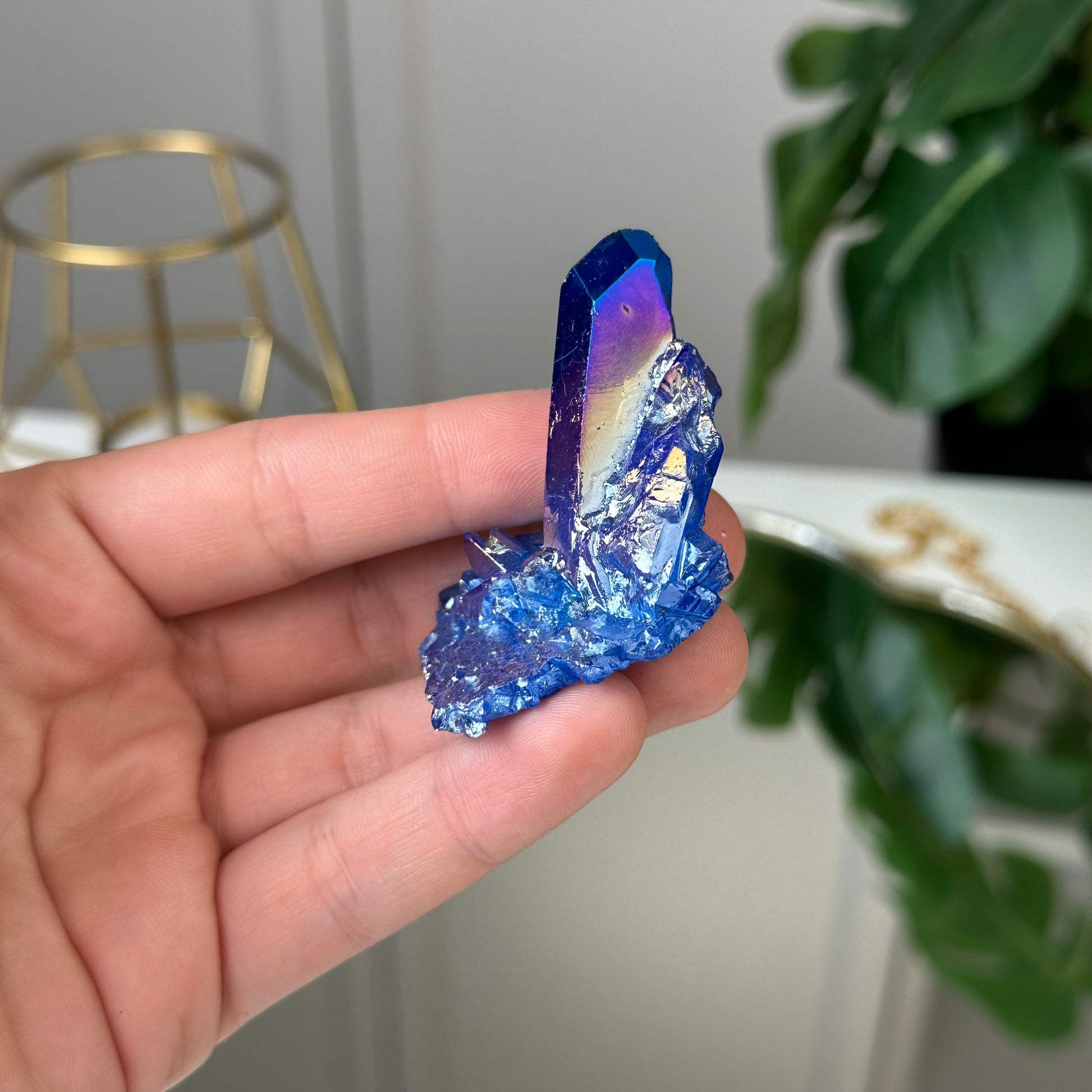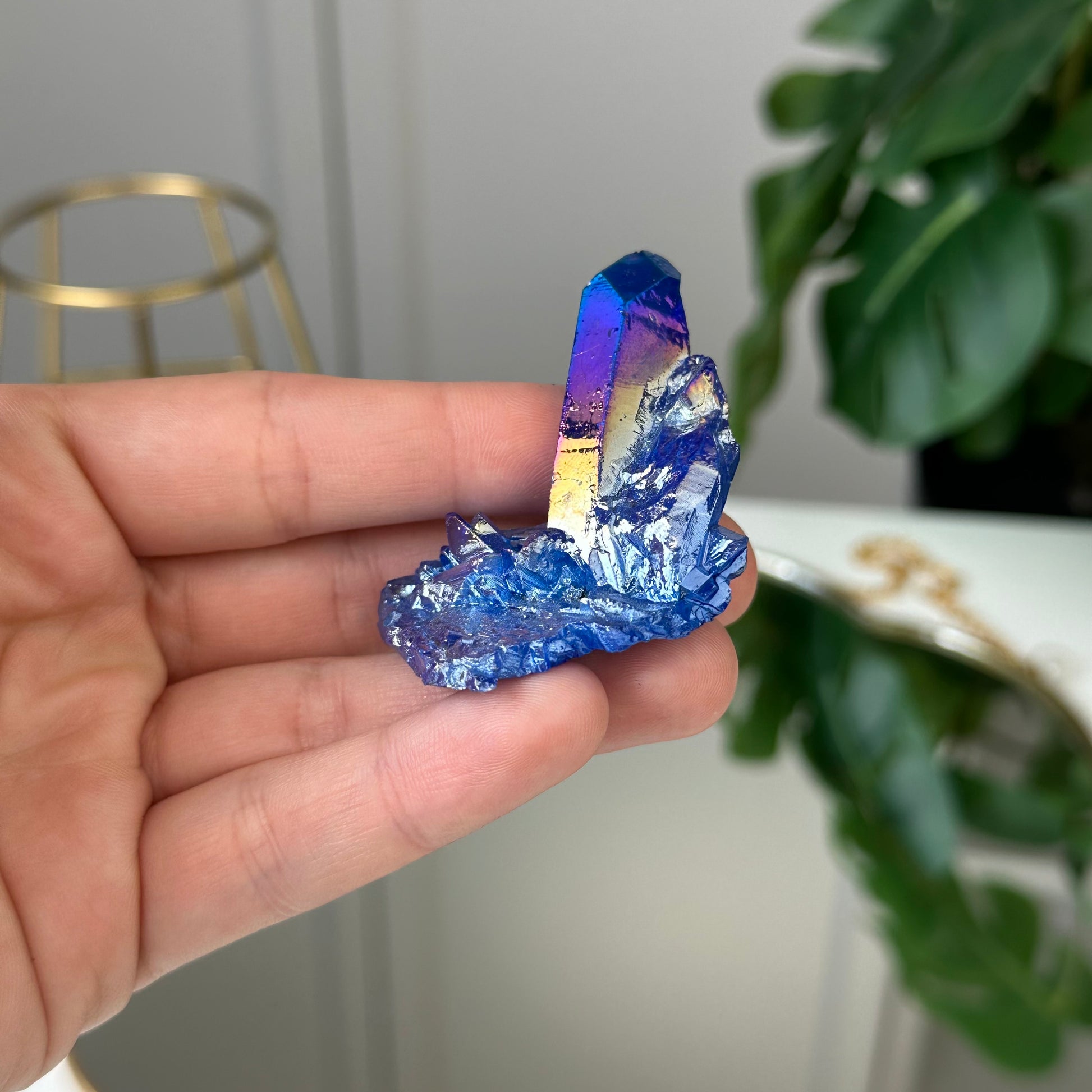AURA KVARCS- ir dabisks caurspīdīgs Kvarcs, kurš savu mirdzošo krāsu iegūst karsēšanas rezultātā. Kvarca kristāls tiek ievietots uzkarsētā vakuma kamerā un pēc tam kamerā tiek ievadīts iztvaicēts metāls, kurš nogulsnējas uz kristāla virsmas radot zaigojošu metālisku spīdumu. Aura Kvarca krāsa ir atkarīga no izmantotā metāla veida.