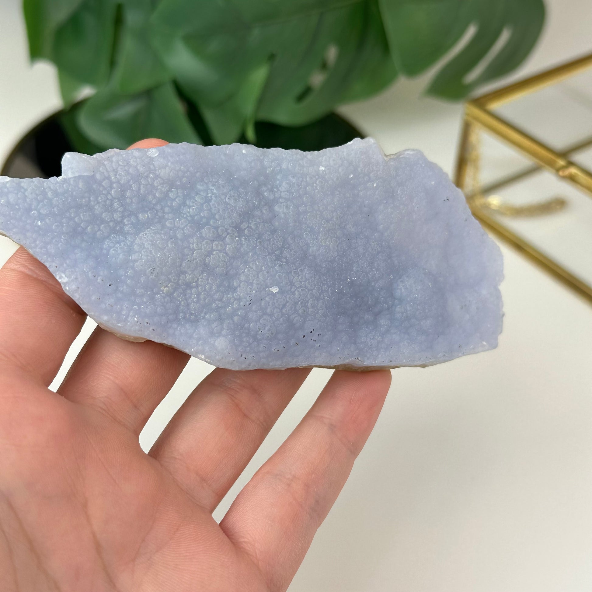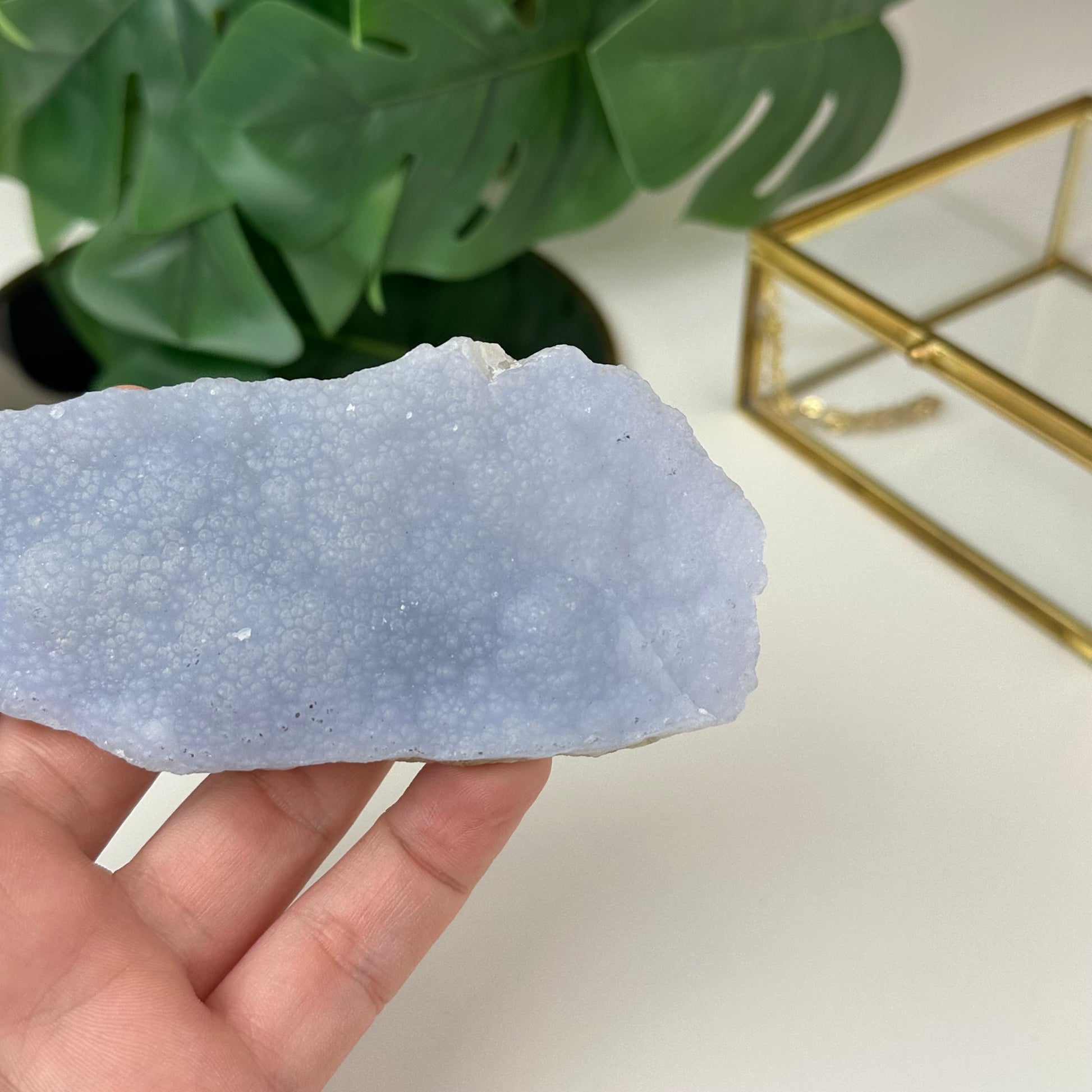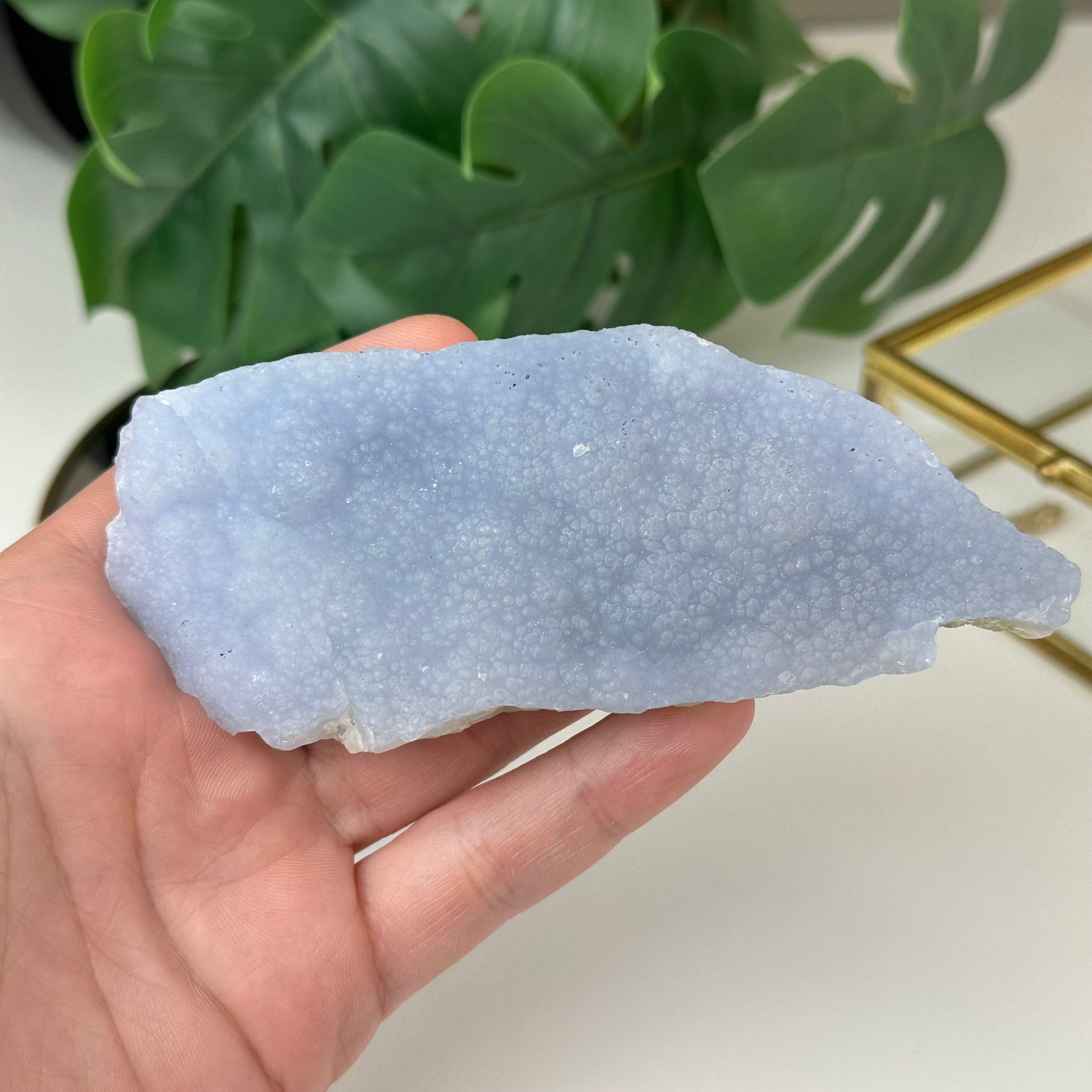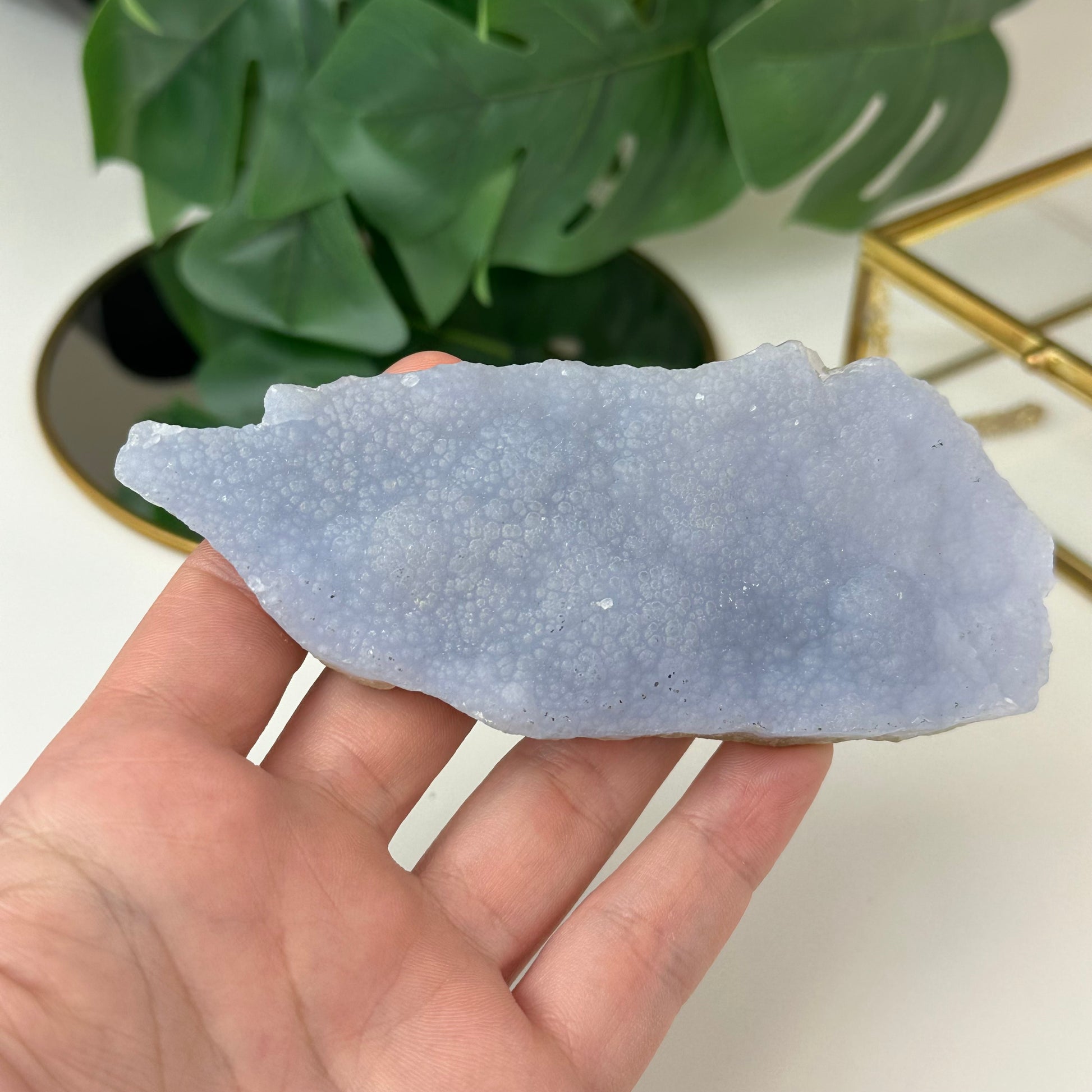 Zilais halcedons pazīstams kā miera, komunikācijas un iekšējās līdzsvara simbols. Šis akmens palīdz nomierināt prātu, mazināt stresu un atvērt sirdi mierīgai un patiesai saziņai. Tiek uzskatīts, ka zilais halcedons veicina pašizpausmi, stiprina uzticēšanos sev un palīdz atrast pareizos vārdus pat sarežģītās situācijās.