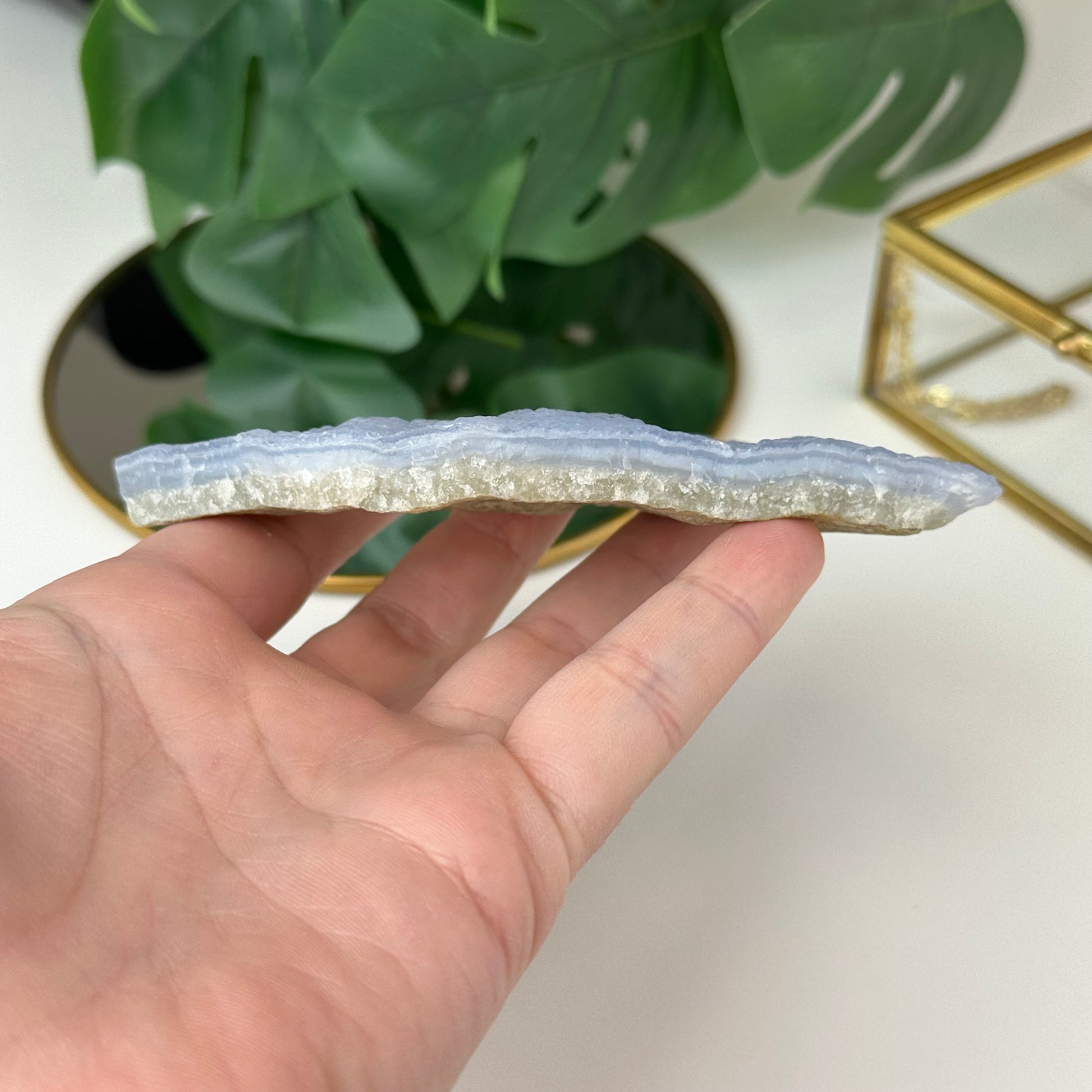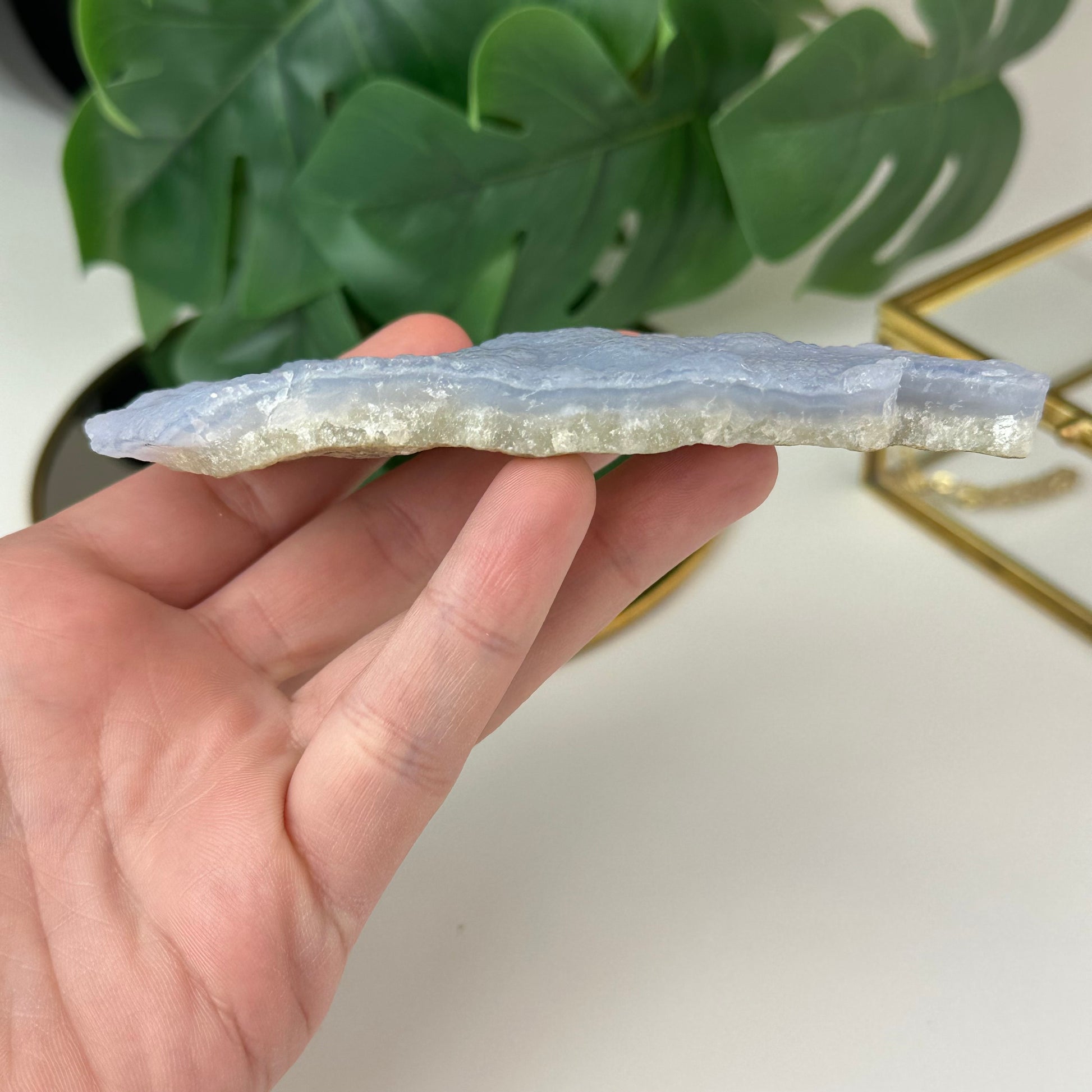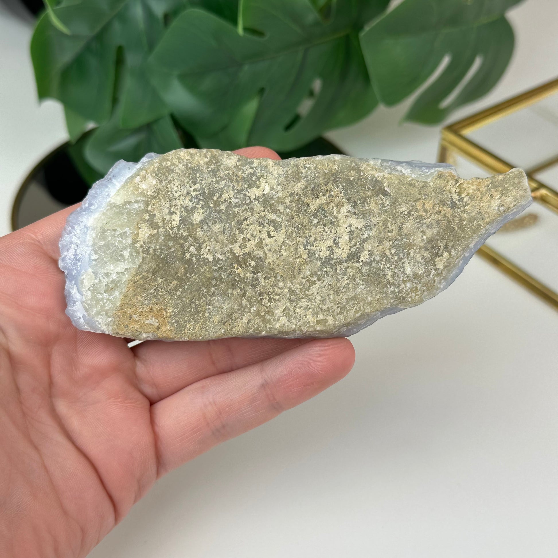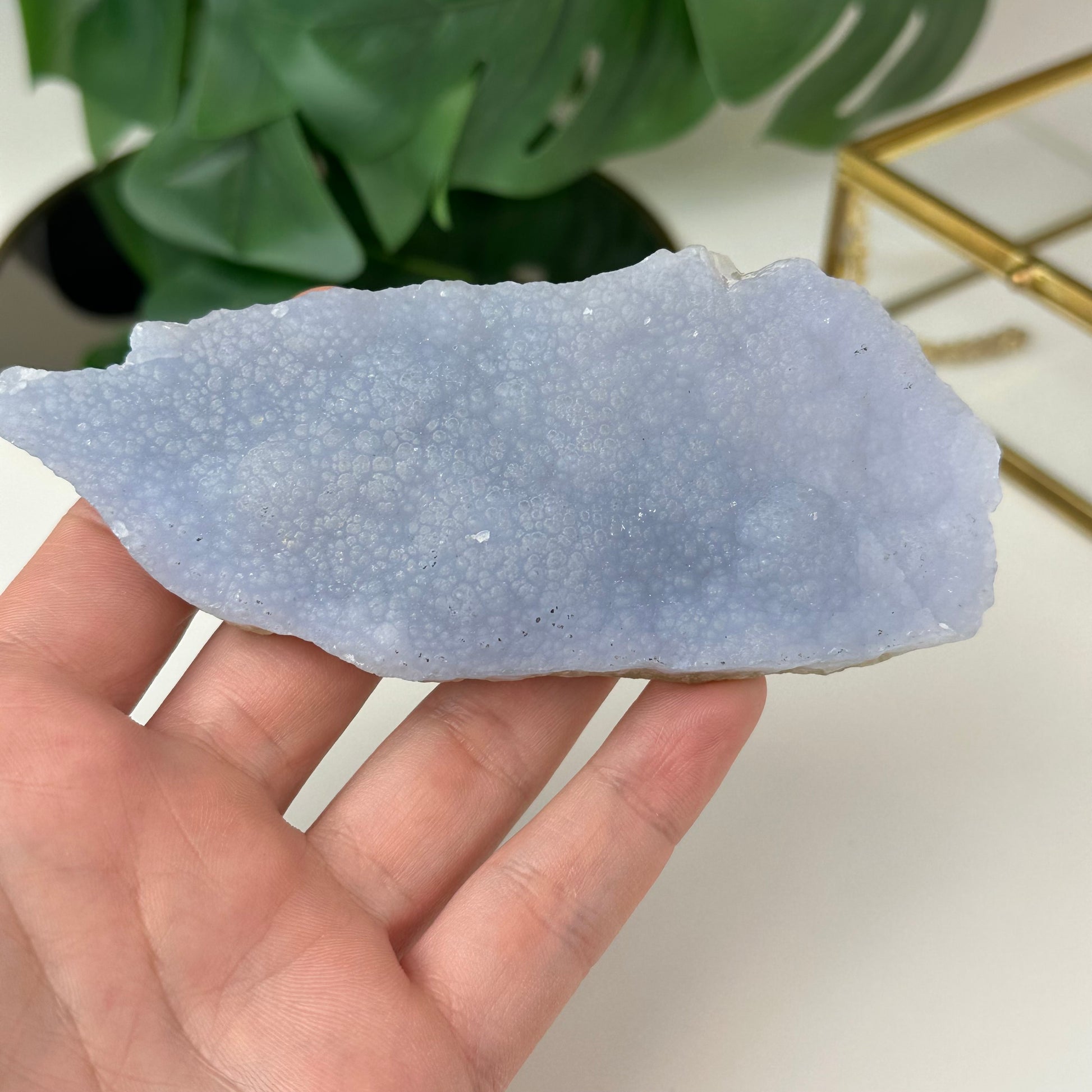 Zilais halcedons pazīstams kā miera, komunikācijas un iekšējās līdzsvara simbols. Šis akmens palīdz nomierināt prātu, mazināt stresu un atvērt sirdi mierīgai un patiesai saziņai. Tiek uzskatīts, ka zilais halcedons veicina pašizpausmi, stiprina uzticēšanos sev un palīdz atrast pareizos vārdus pat sarežģītās situācijās.