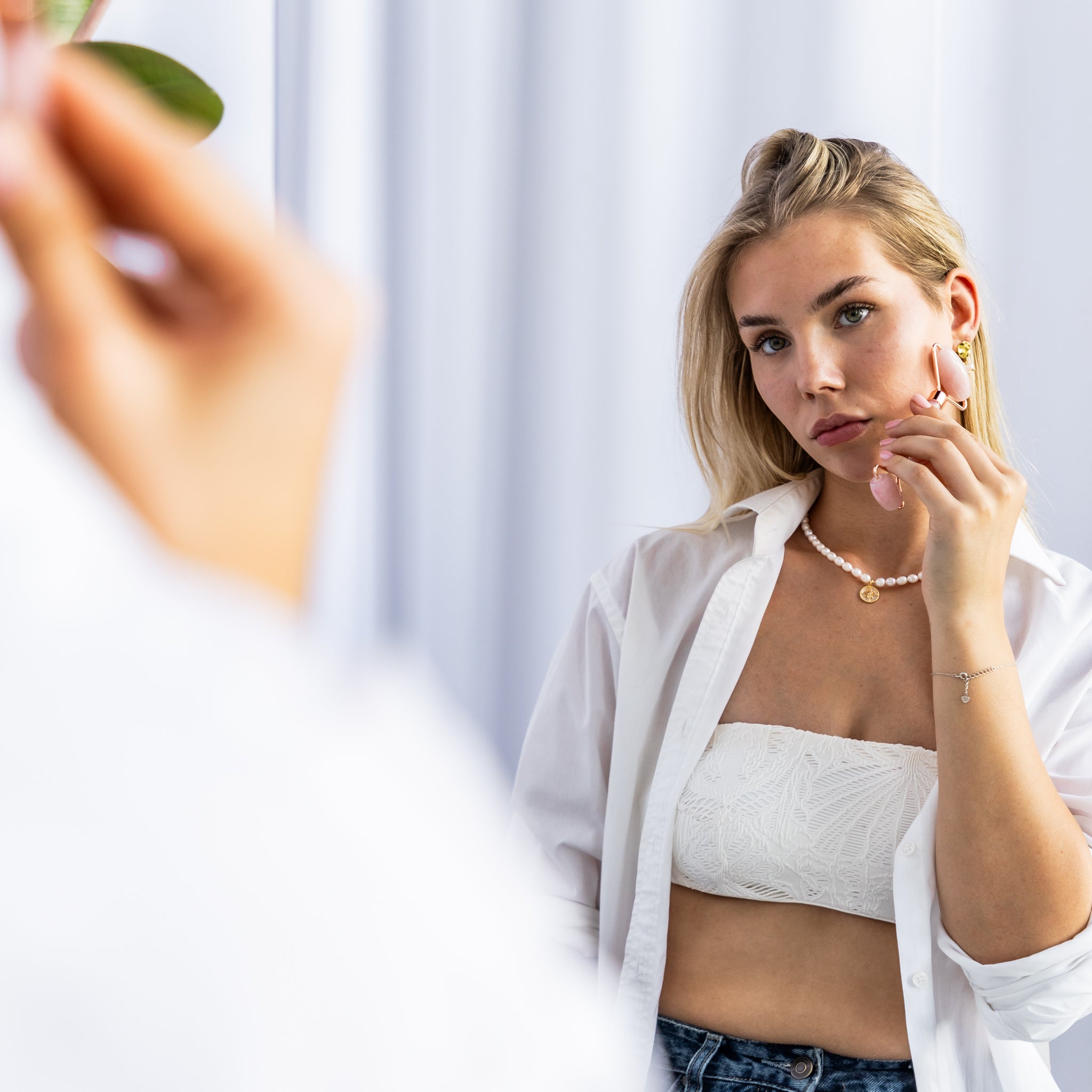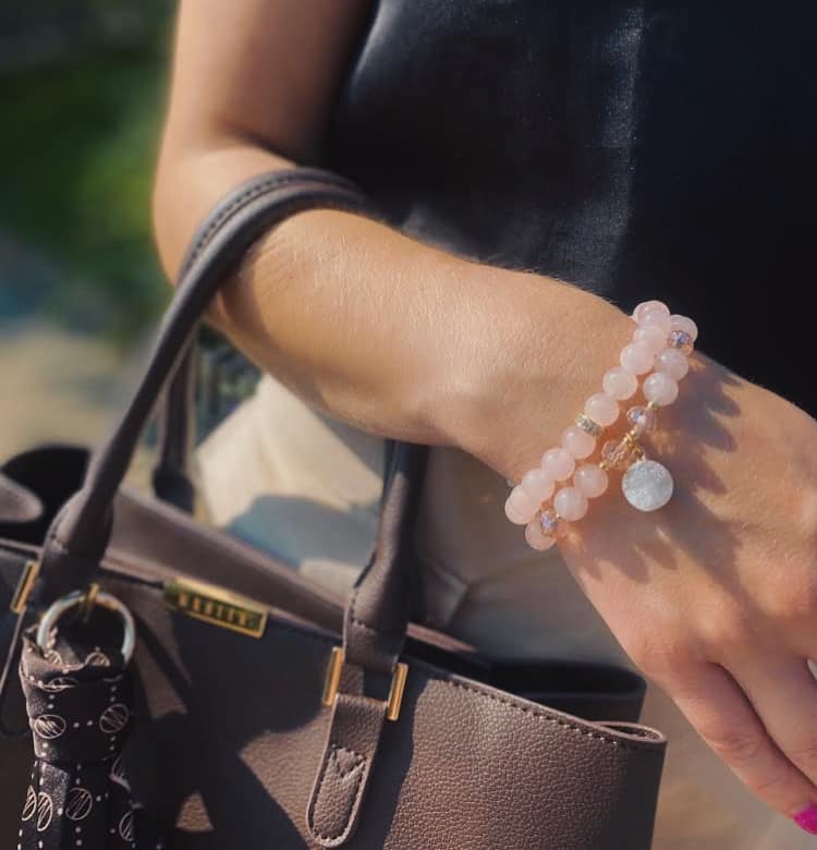 Madagascar Rose Quartz bracelet set with decorative crystals earrings