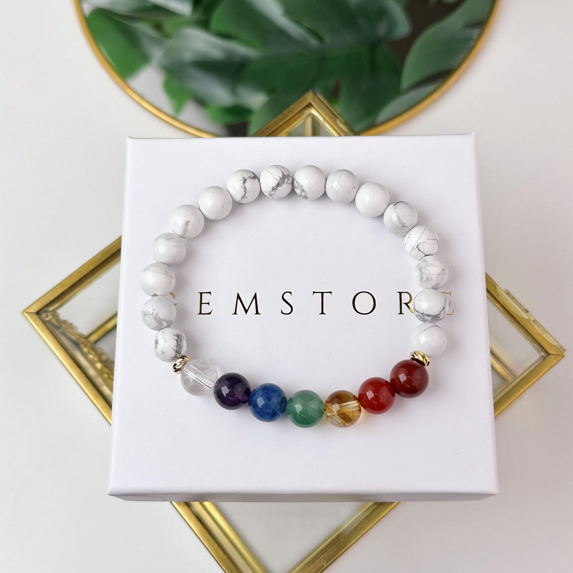 7 čakru rokassprādze ar Hovlītu (8mm)