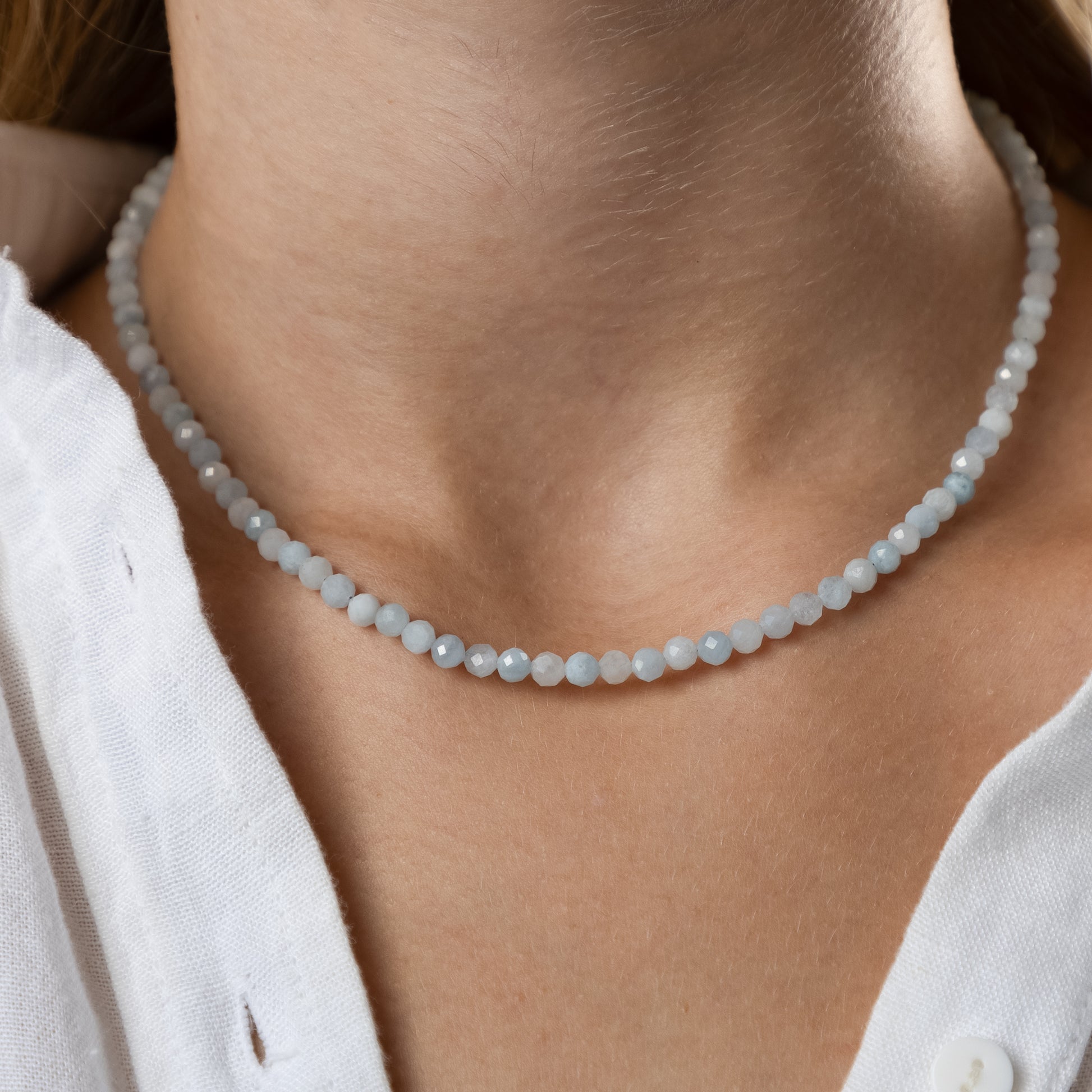 Akvamarīna kaklarota (Akvamarīns, slīpēta forma, 5mm, 39cm. Aizdare- Sudrabs 925.)