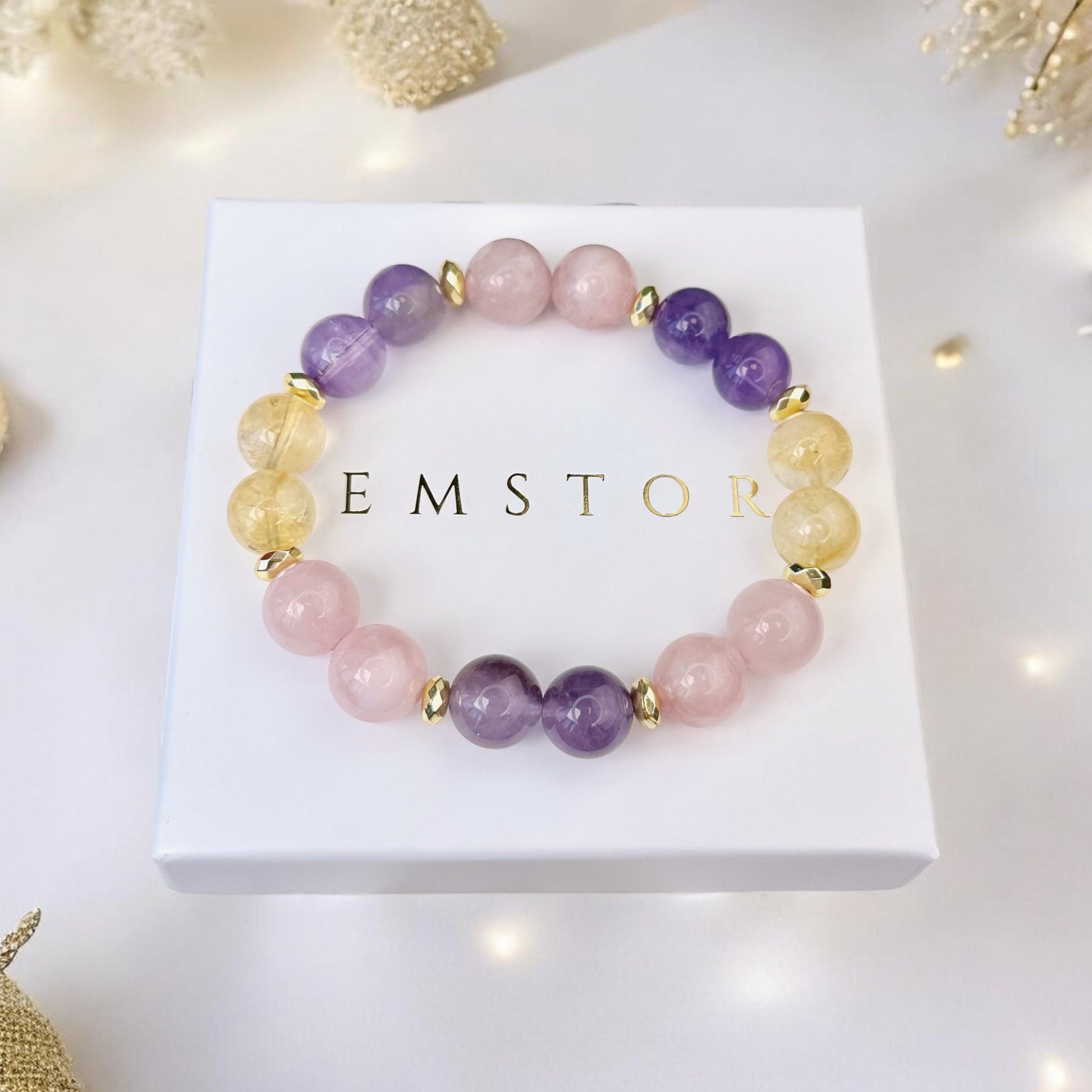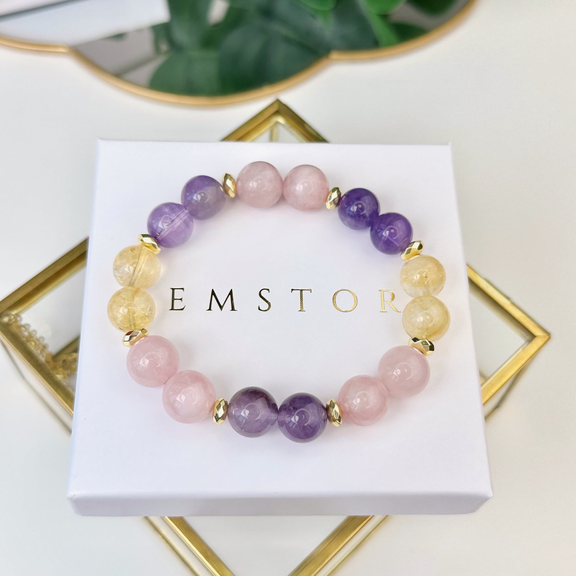 Ametista, Rozā Kvarca un Citrīna rokassprādze (Ametists, Rozā Kvarcs, Citrīns, 10mm. Mīlestībai, veiksmei un pozitīvai enerģijai.)