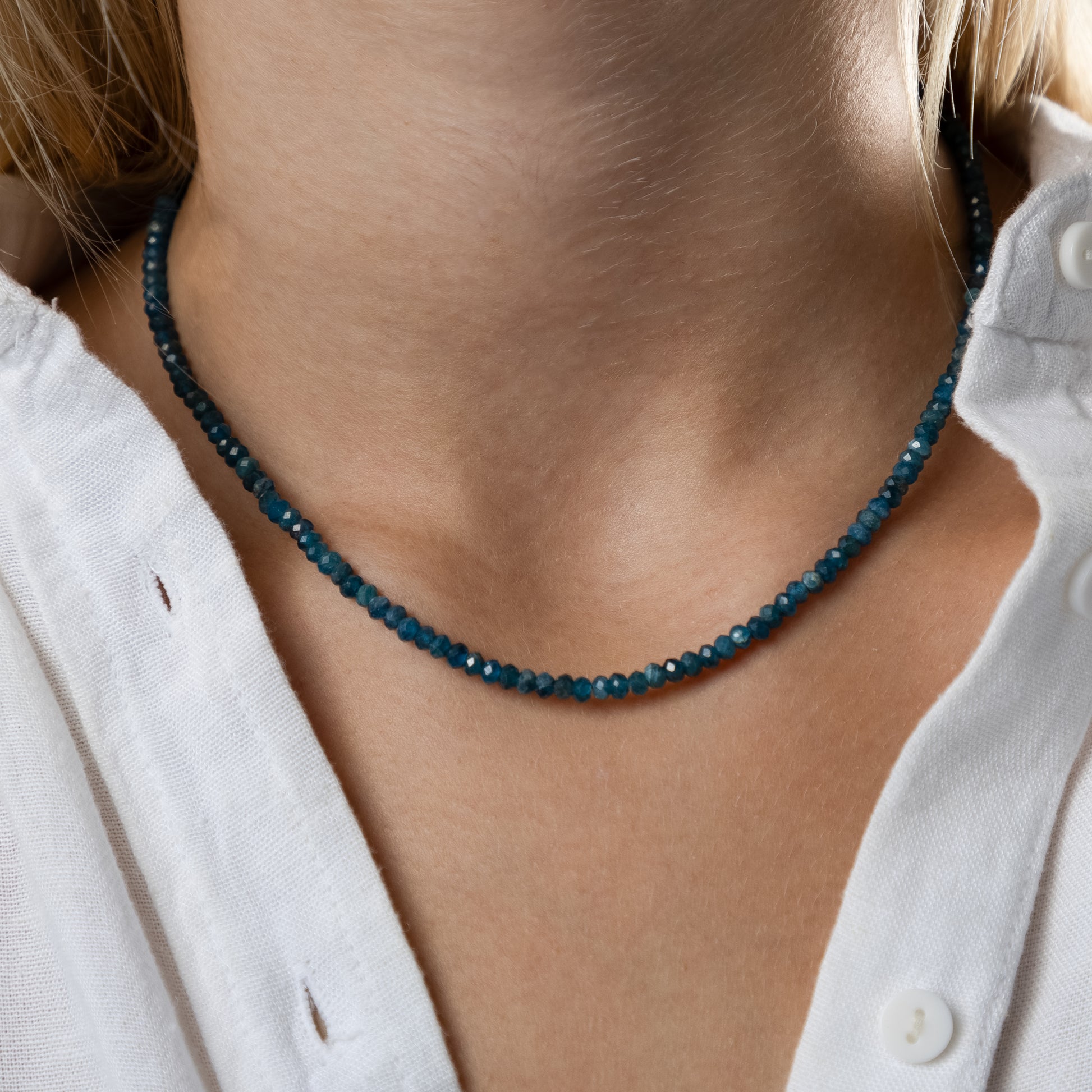 Apatīta kaklarota (Apatīts, slīpēta forma, 4mm, 38.5cm. Aizdare- Sudrabs 925 apzeltīts.)
