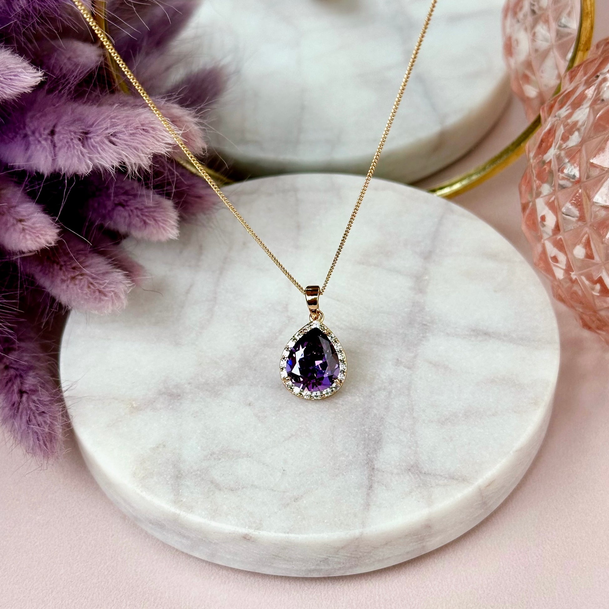 Apzeltīta Kaklarota "Royal Glow " ar violetas krāsas kristālu (45cm)