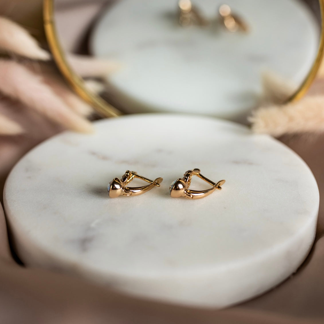 *Izgatavoti no medicīniskā metāla ar zelta pārklājumu un kubiskā cirkonija, šie auskari ir ne tikai skaisti, bet arī droši jūsu ausīm. Tie ir antialerģiski, bez niķeļa piejaukuma un tie nodrošina, ka jūsu ausis netiks kairinātas un auskari nepaliks melni.