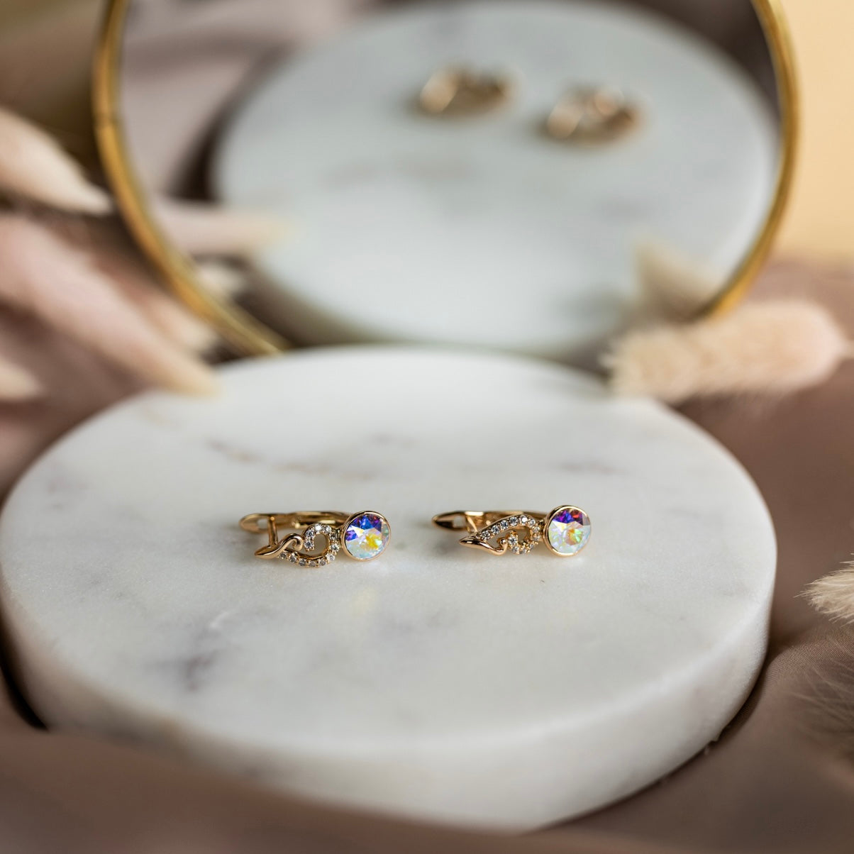Apzeltīti auskari "Adore" ar hameleona krāsas kristālu