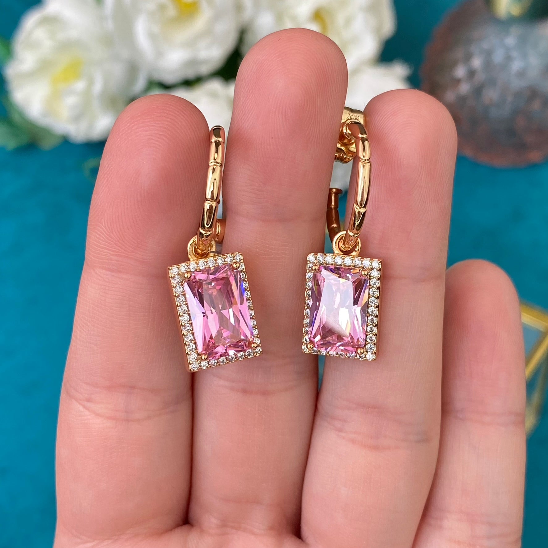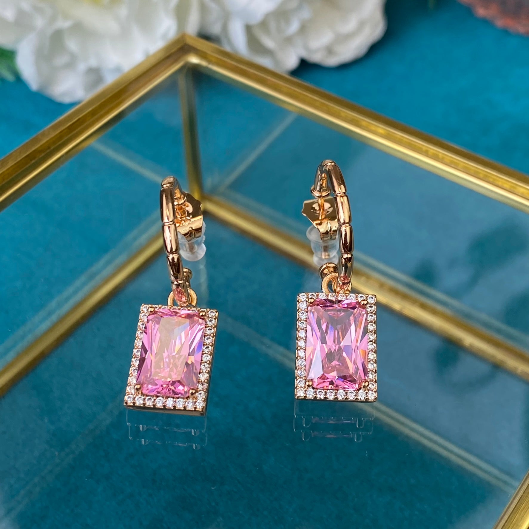 Apzeltīti auskari ar rozā dekoratīvu kristālu