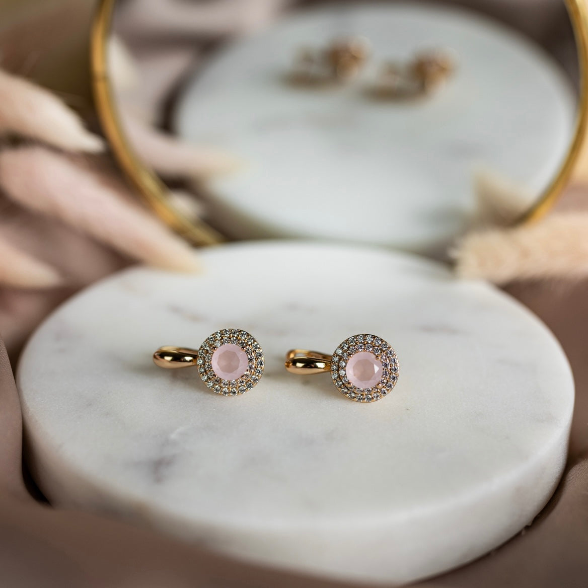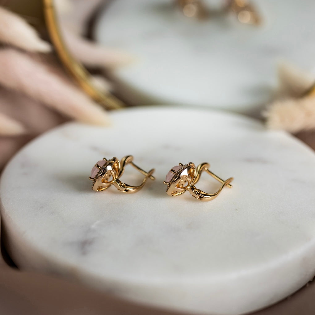 Apzeltīti auskari ar rozā kubisko cirkoniju