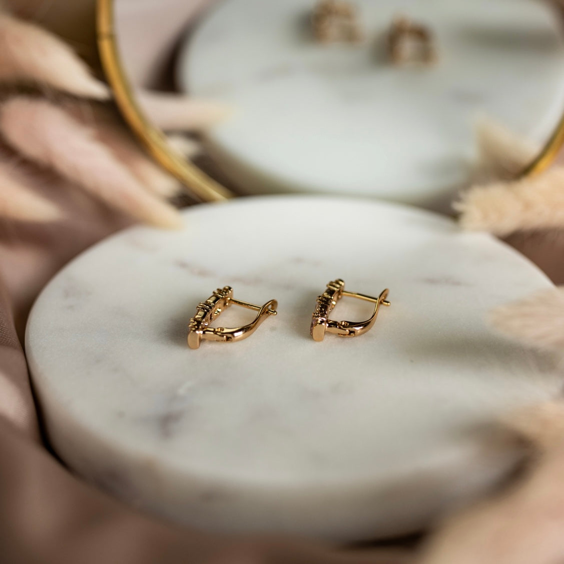 *Izgatavoti no medicīniskā metāla ar zelta pārklājumu un kubiskā cirkonija, šie auskari ir ne tikai skaisti, bet arī droši jūsu ausīm. Tie ir antialerģiski, bez niķeļa piejaukuma un tie nodrošina, ka jūsu ausis netiks kairinātas un auskari nepaliks melni.
