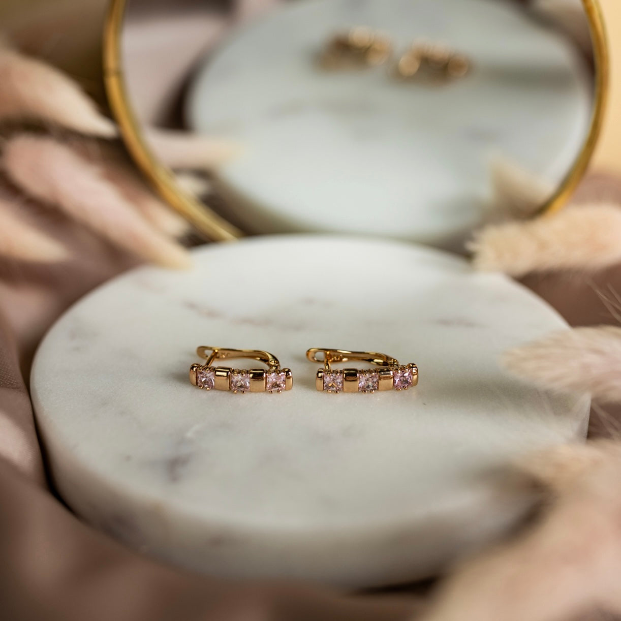 Apzeltīti auskari "Mia" ar rozā kristāliņiem
