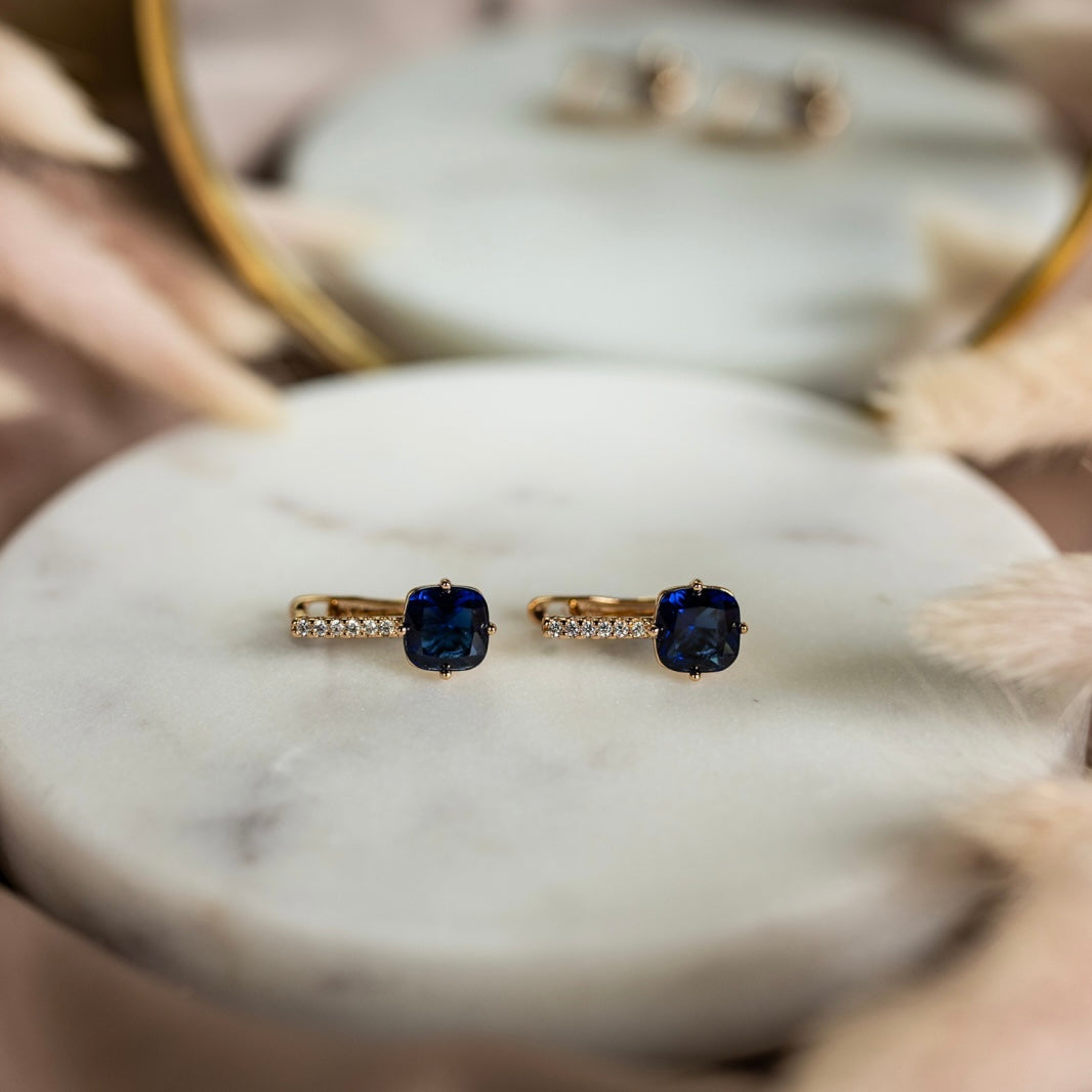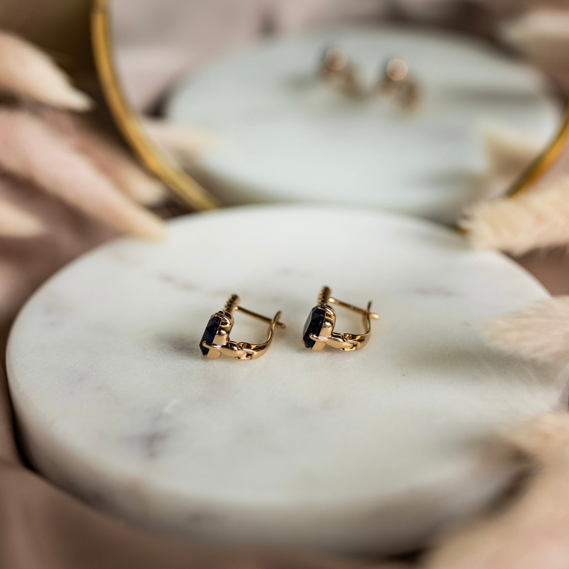 Apzeltīti auskari "Nyx" ar zilu kristālu