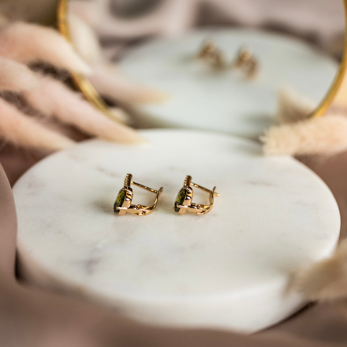 Apzeltīti auskari "Olivia" ar zaļu kristālu