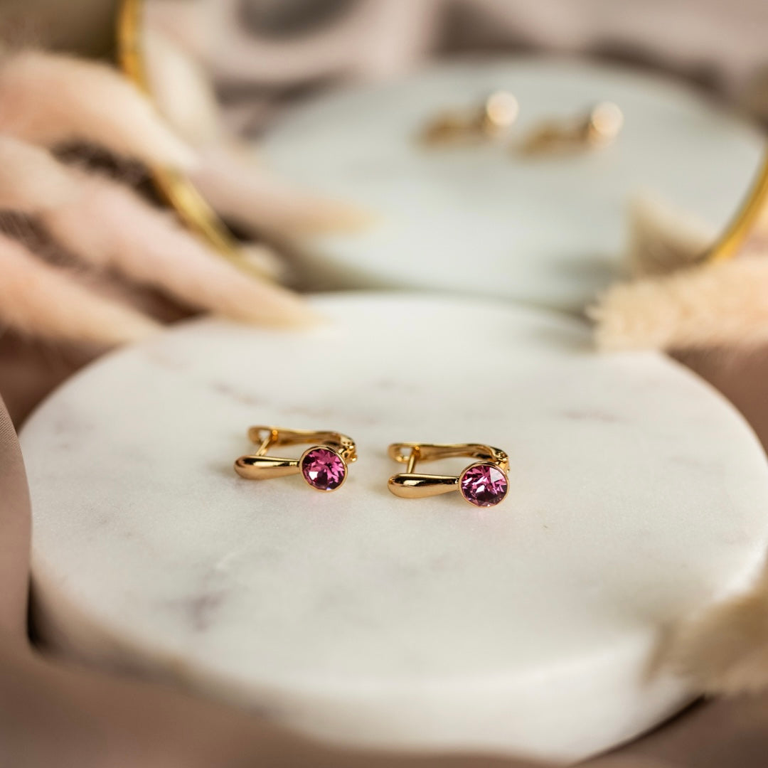 Apzeltīti auskari "Peony" ar rozā kristālu