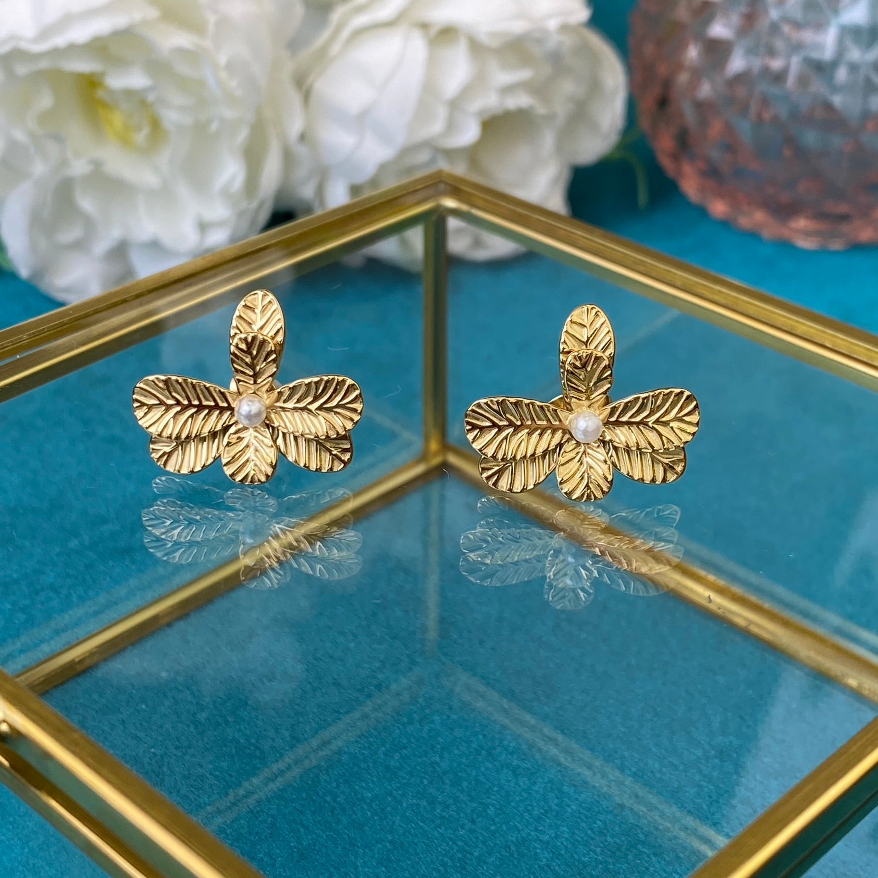 Apzeltīti auskari "Puķīte" ar Upes Pērli