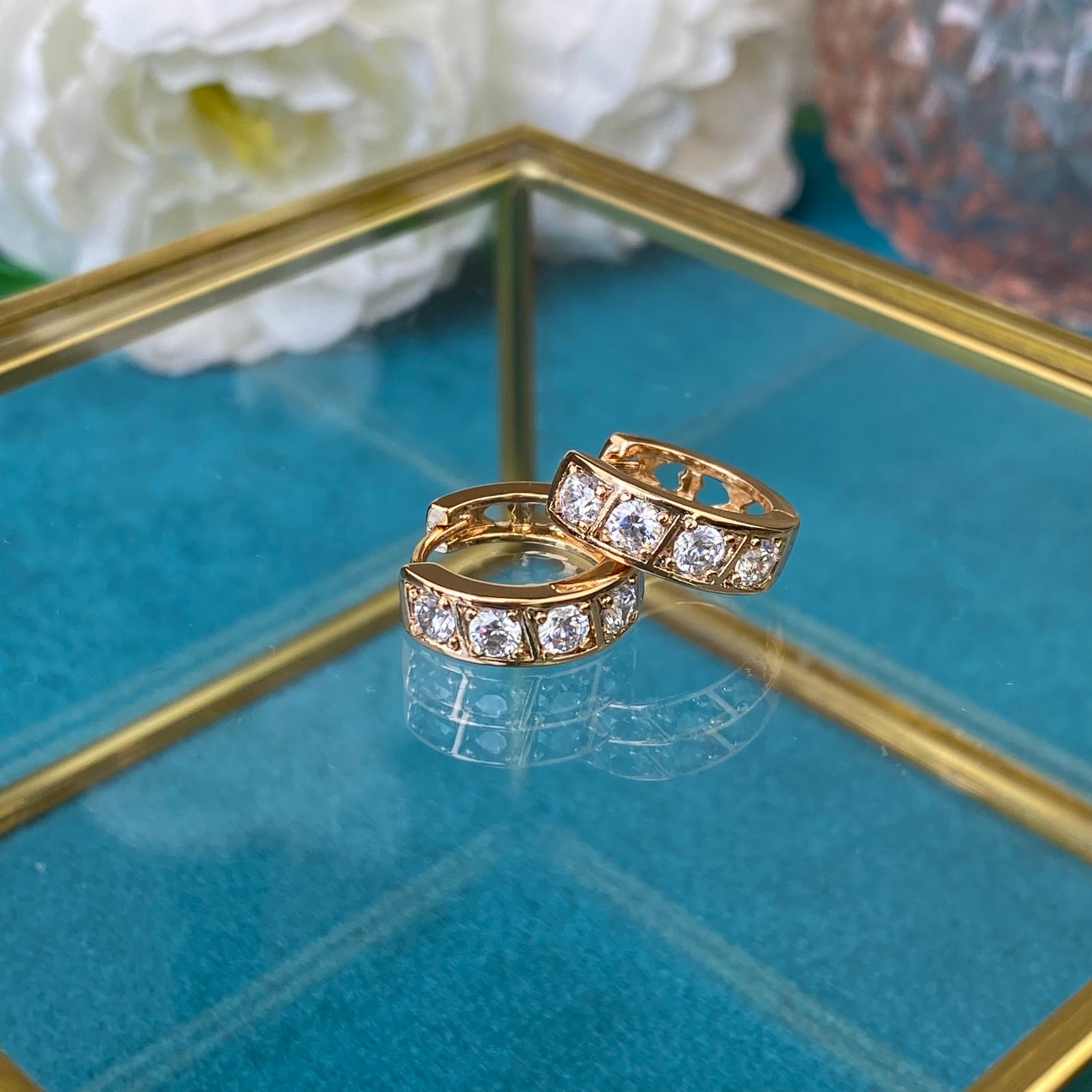 Apzeltīti auskari- riņķīši ar dekoratīviem kristāliem