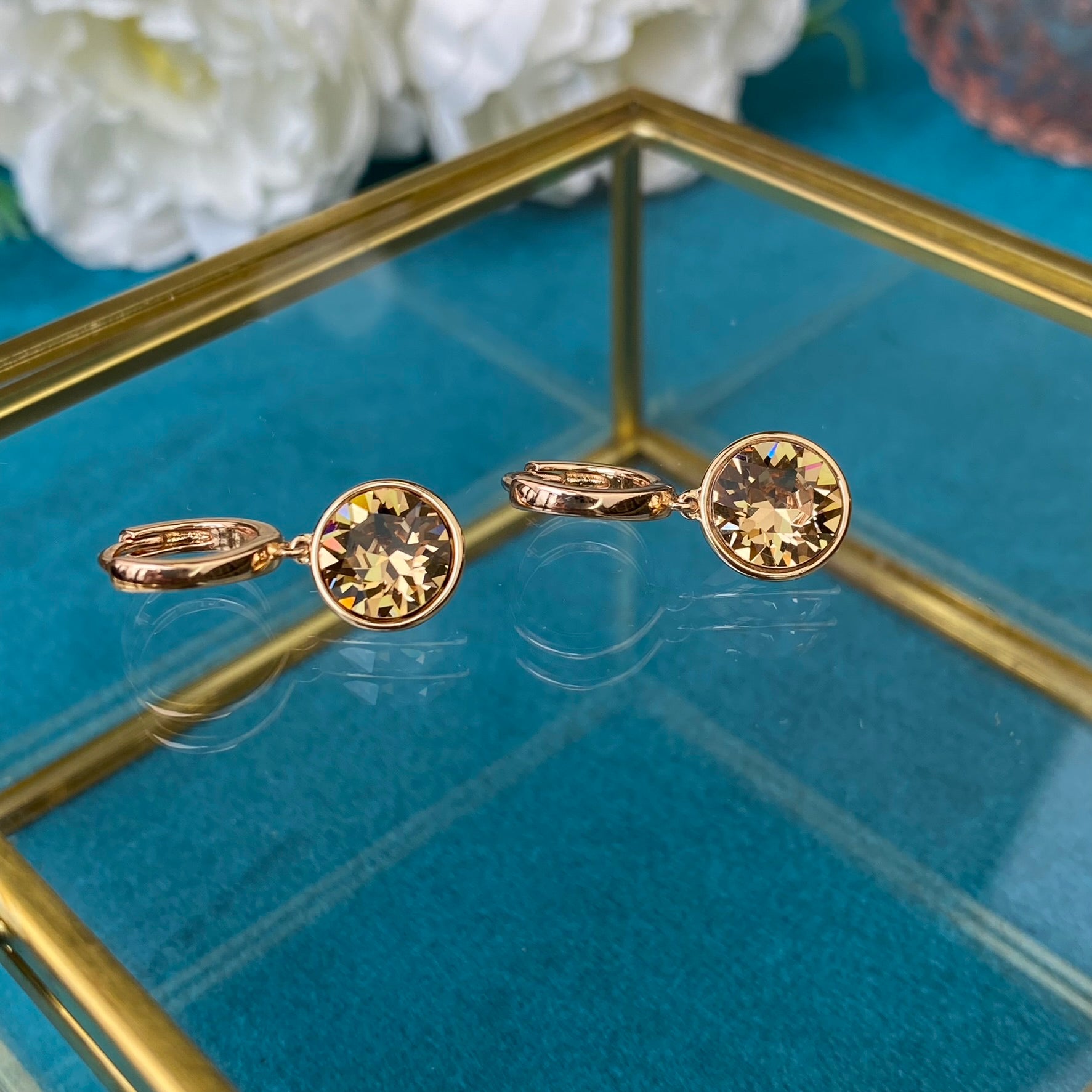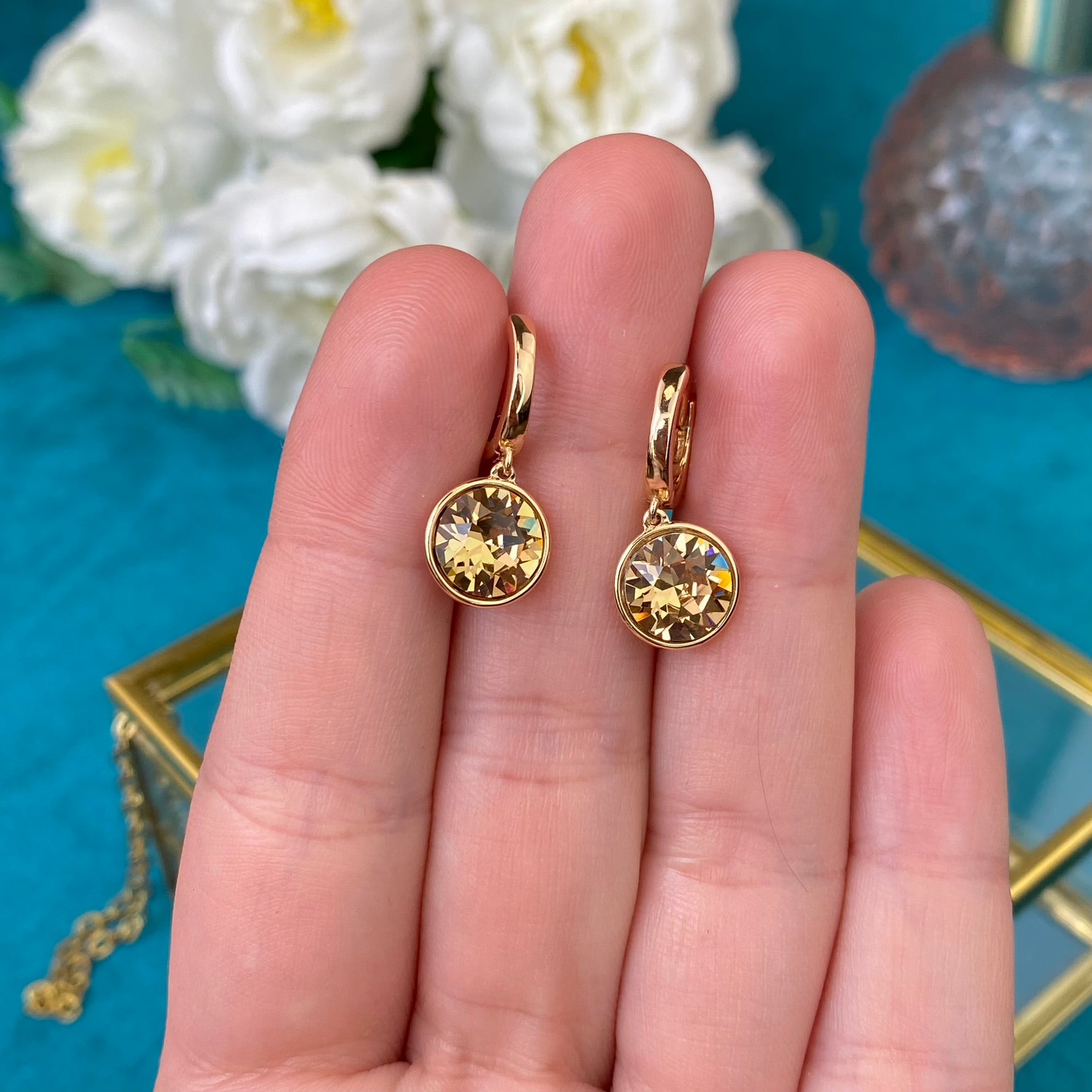 Apzeltīti auskari-riņķīši ar dzeltenu dekoratīvu kristālu