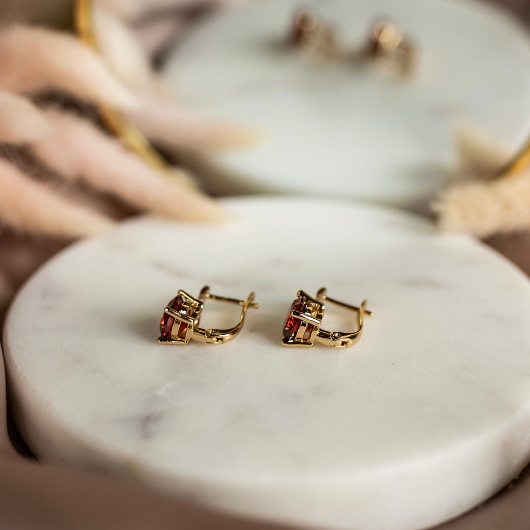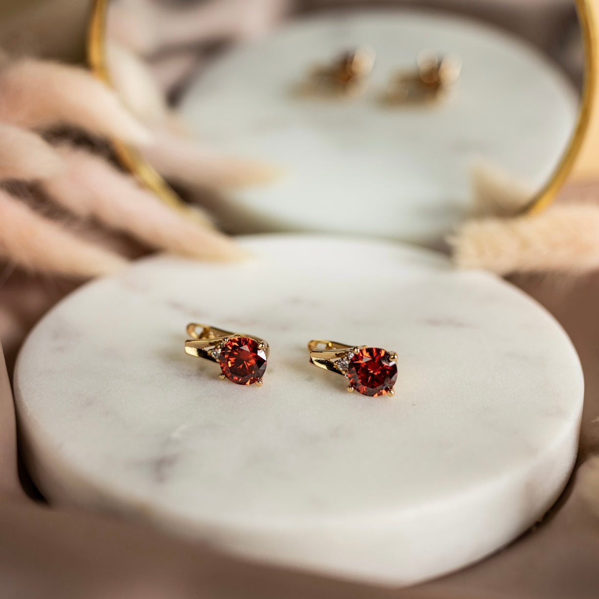 Apzeltīti auskari "Velvet" ar sarkanu kristālu