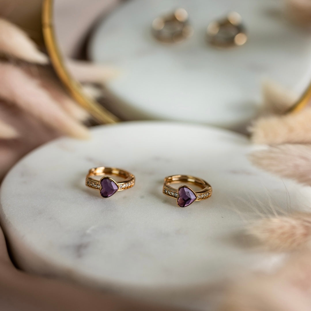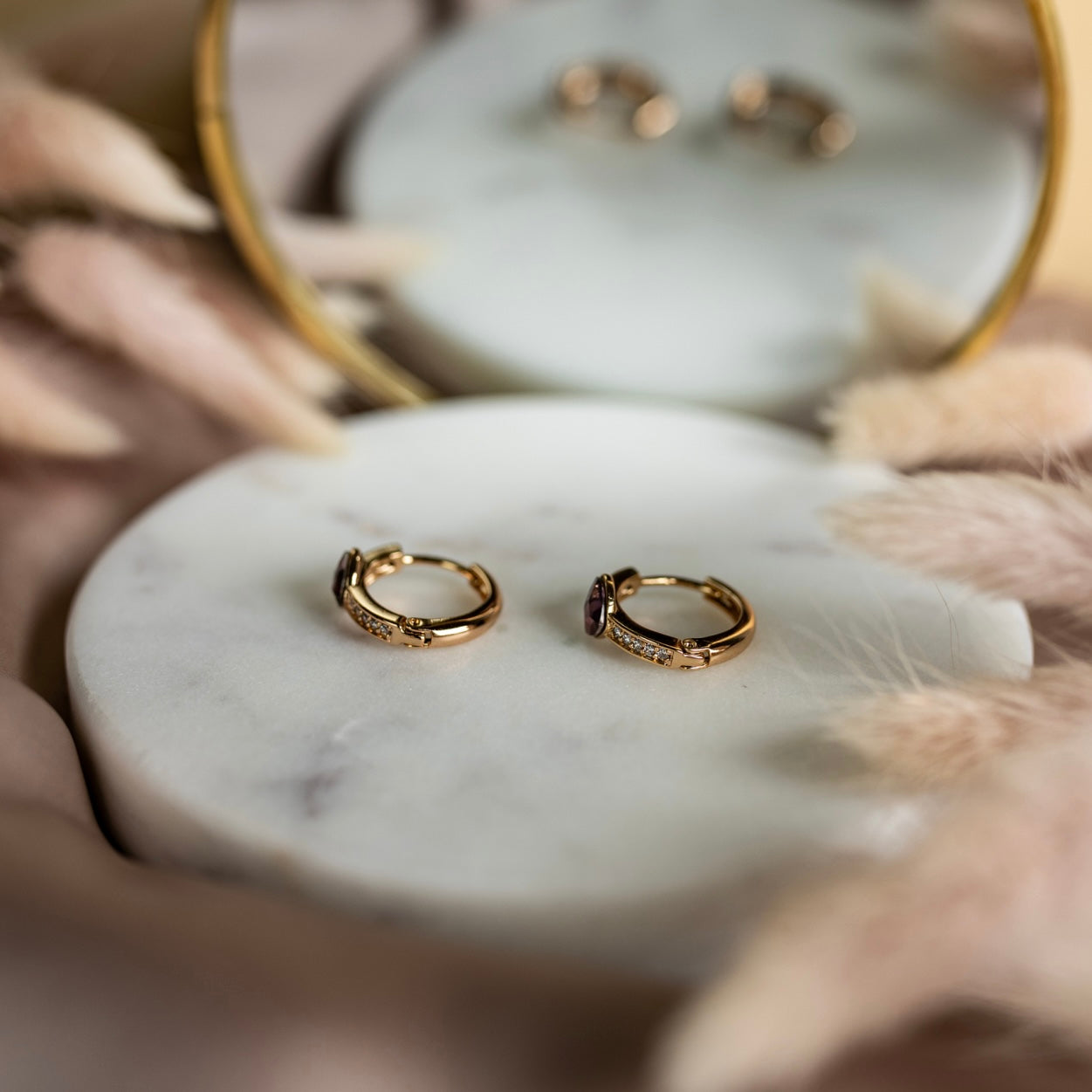 Apzeltīti riņķi ar violetu kubisko cirkonija sirsniņu