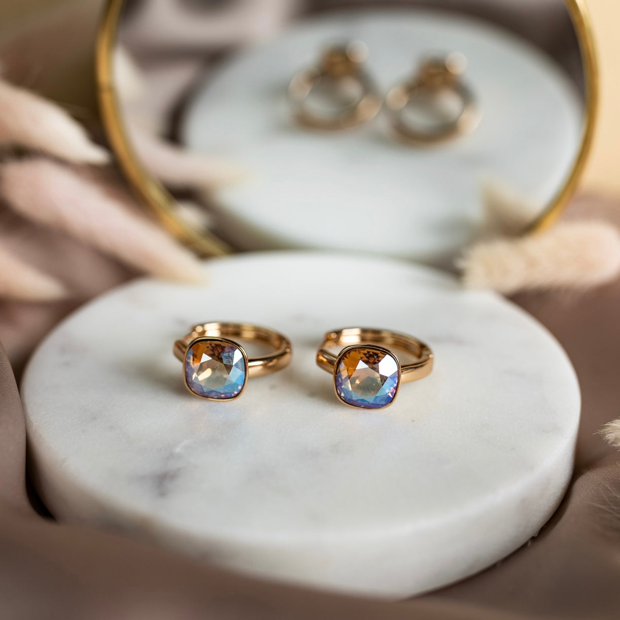Apzeltīti riņķi ar zilganu kubisko cirkoniju