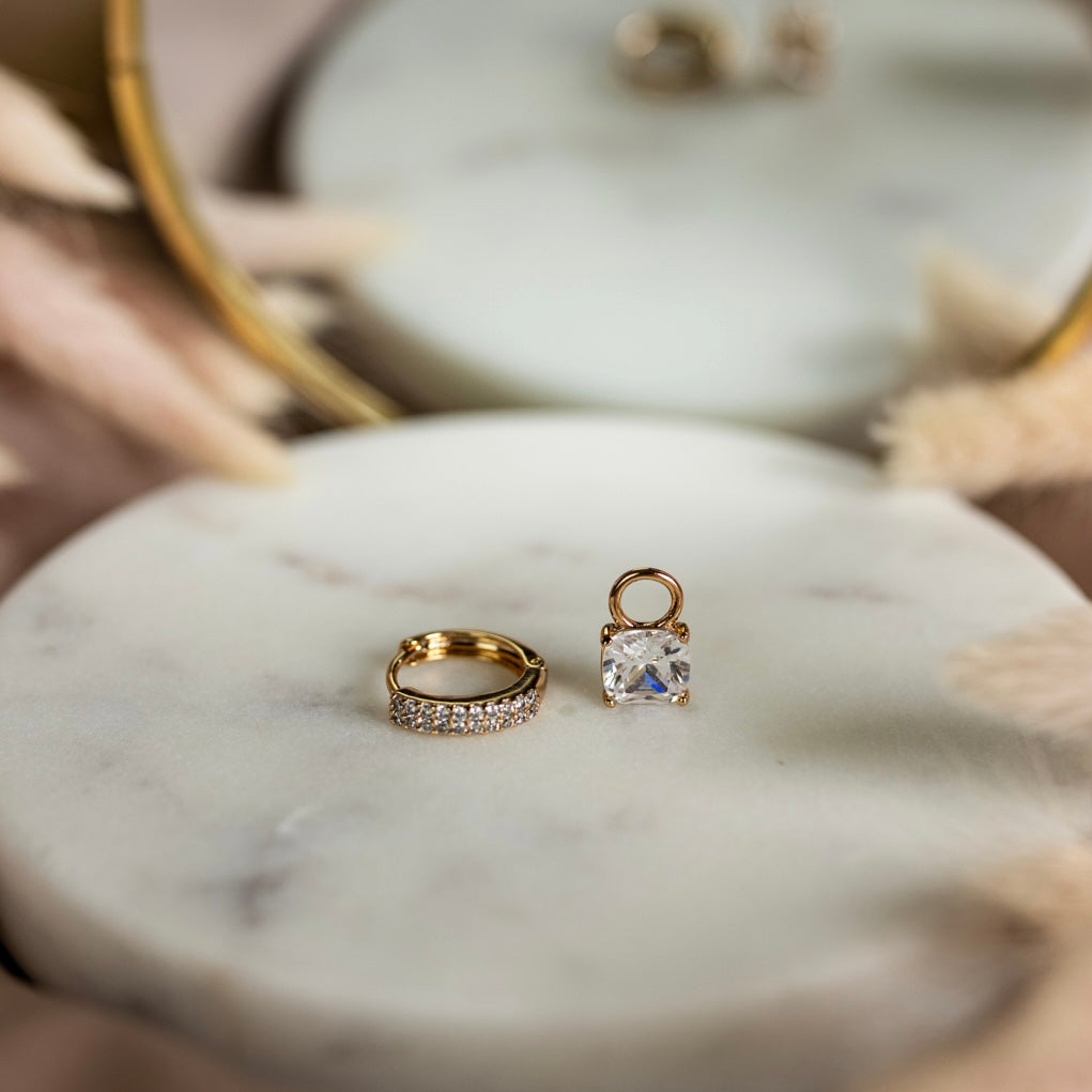 Apzeltīti riņķi ar kubiskā cirkonija piekariņu 2 in 1