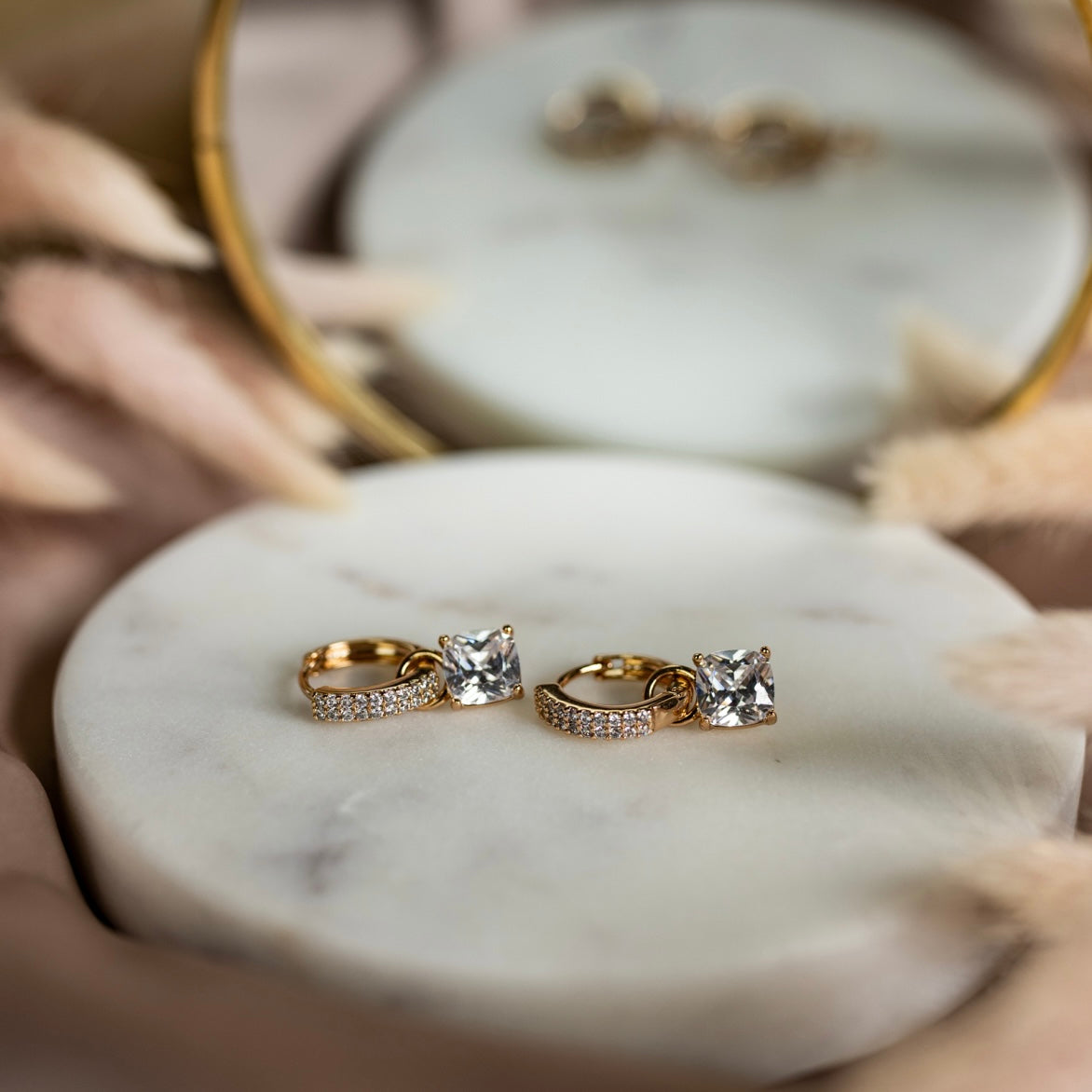 *Izgatavoti no medicīniskā metāla ar zelta pārklājumu un kubiskā cirkonija, šie auskari ir ne tikai skaisti, bet arī droši jūsu ausīm. Tie ir antialerģiski, bez niķeļa piejaukuma un tie nodrošina, ka jūsu ausis netiks kairinātas un auskari nepaliks melni.