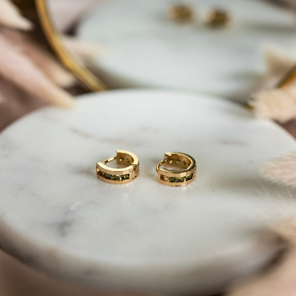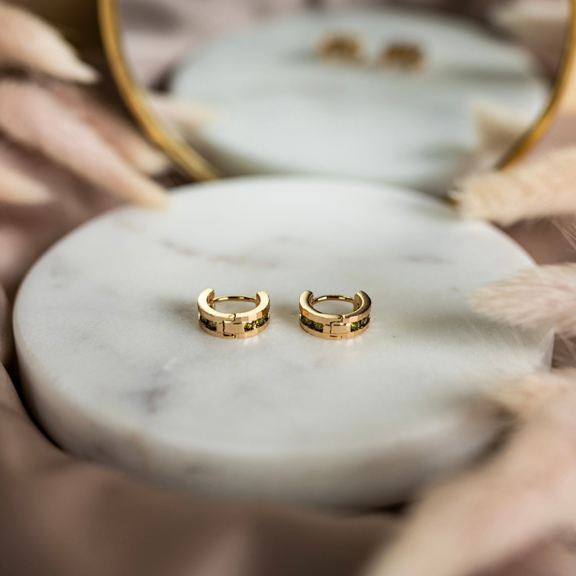 Apzeltīti riņķīši ar zaļu kubisko cirkoniju