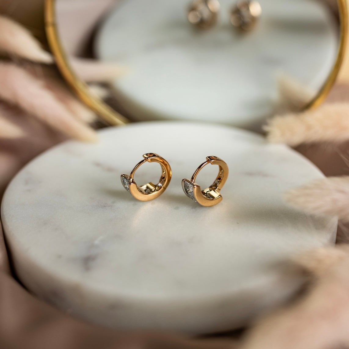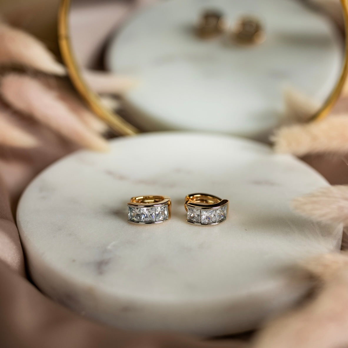 *Izgatavoti no medicīniskā metāla ar zelta pārklājumu un kubiskā cirkonija, šie auskari ir ne tikai skaisti, bet arī droši jūsu ausīm. Tie ir antialerģiski, bez niķeļa piejaukuma un tie nodrošina, ka jūsu ausis netiks kairinātas un auskari nepaliks melni.