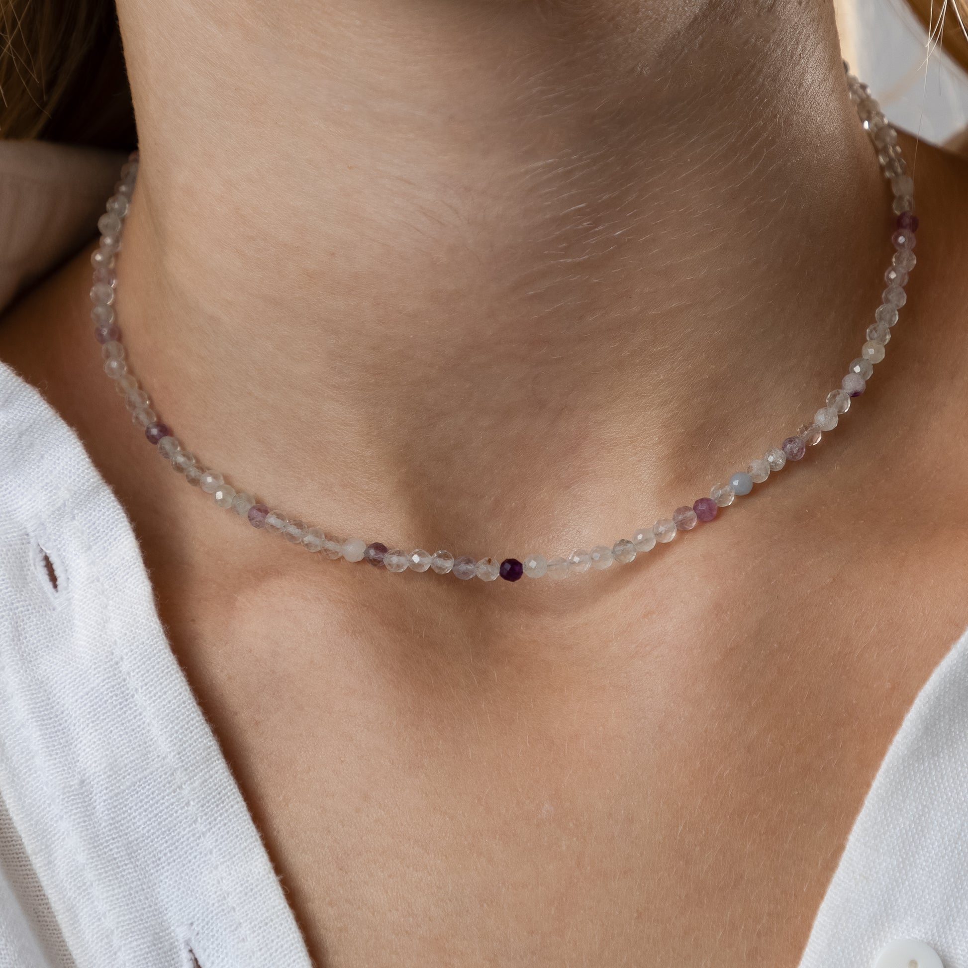 Fluorīta kaklarota (Fluorīts, slīpēta forma, 4mm, 35cm. Aizdare- Sudrabs 925 apzeltīts.)
