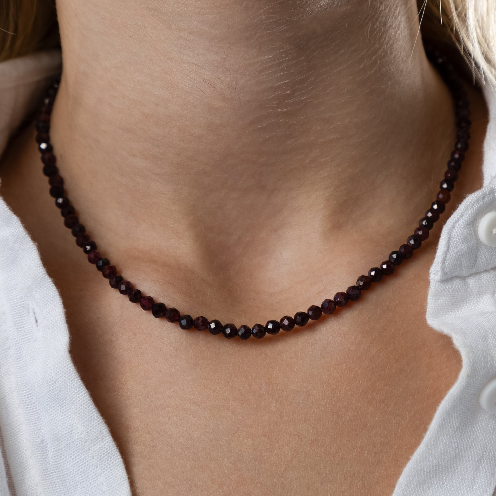 Granāta kaklarota (Granāts, slīpēta forma, 4mm, 38cm. Aizdare Sudrabs 925-apzeltīts.)