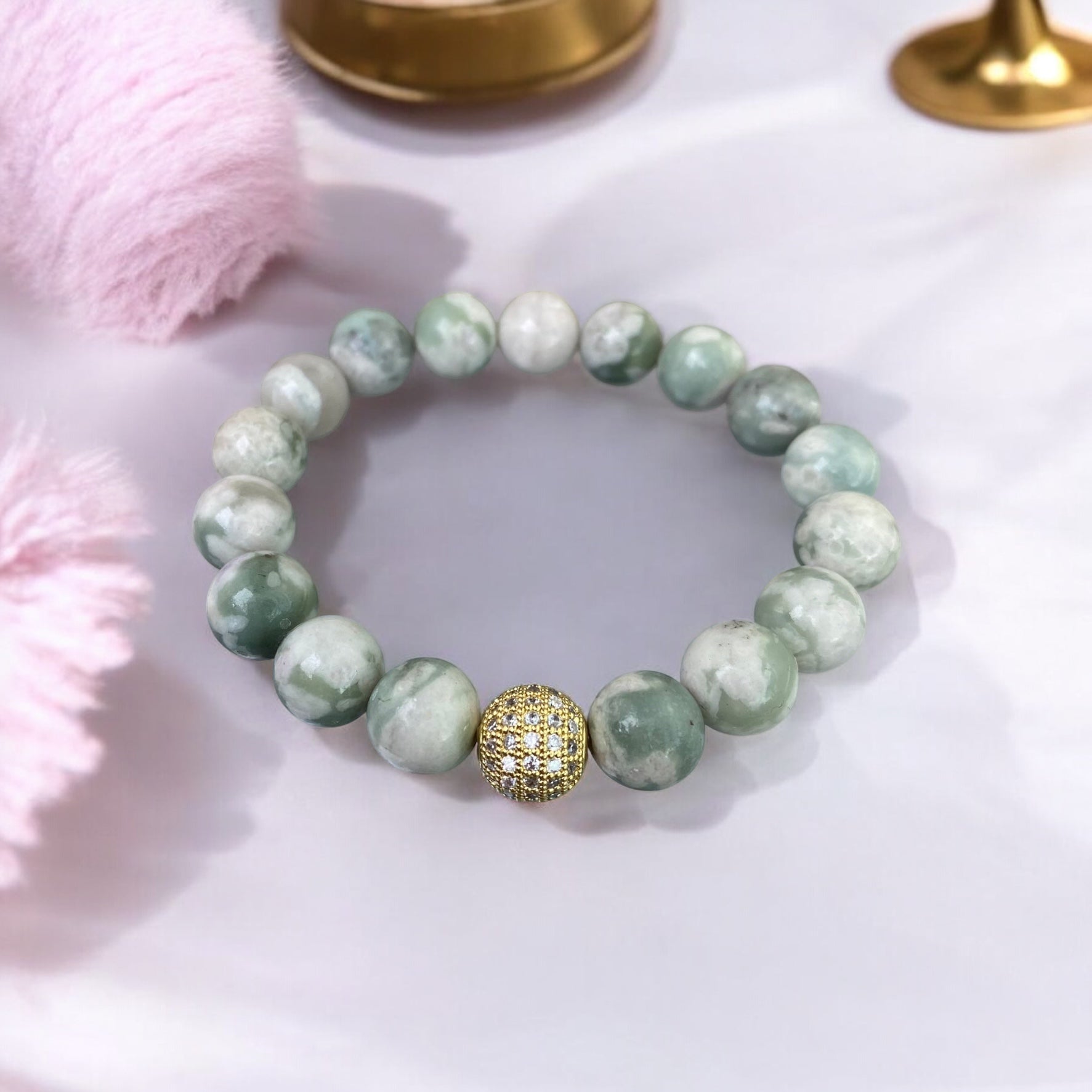Žadeīta rokassprādze ar dekoratīvu bumbiņu (Žadeīts 10mm)