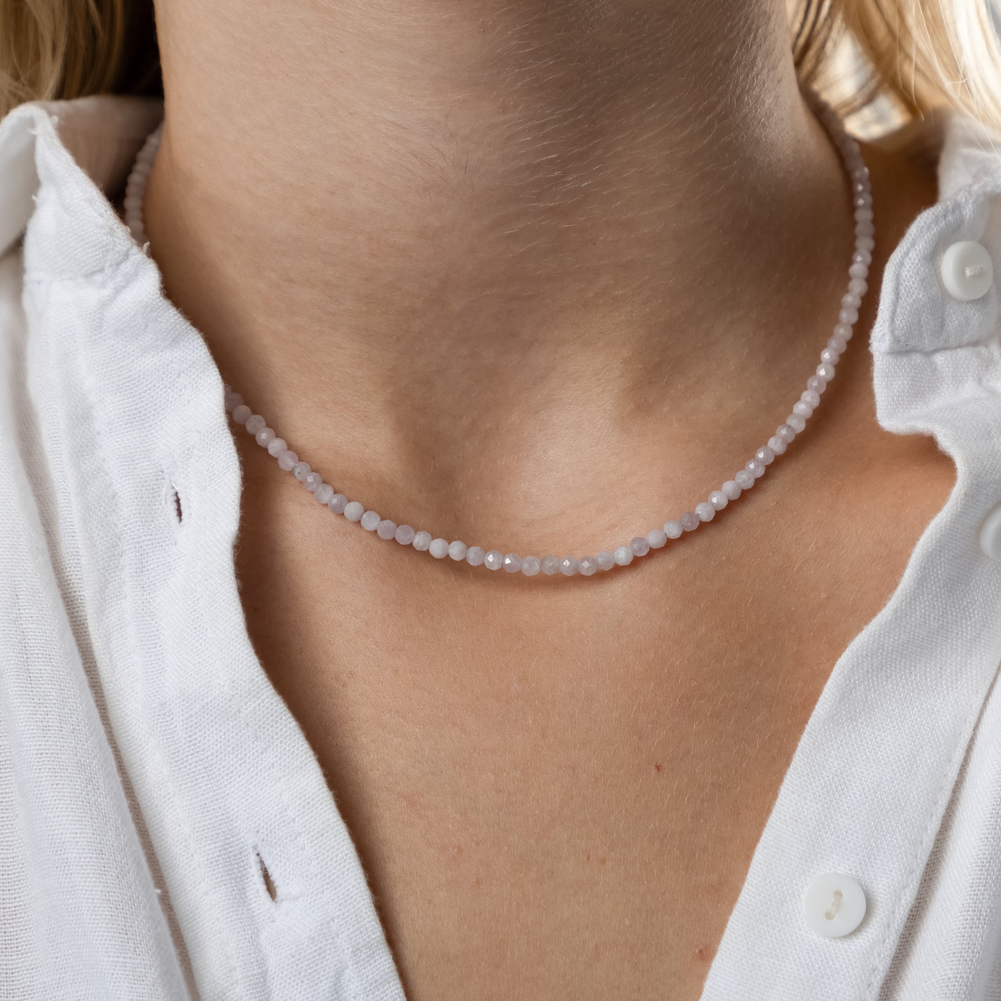 Kuncīta kaklarota (Kuncīts, slīpēta forma, 4mm, 38cm. Aizdare- Sudrabs 925-apzeltīts.)