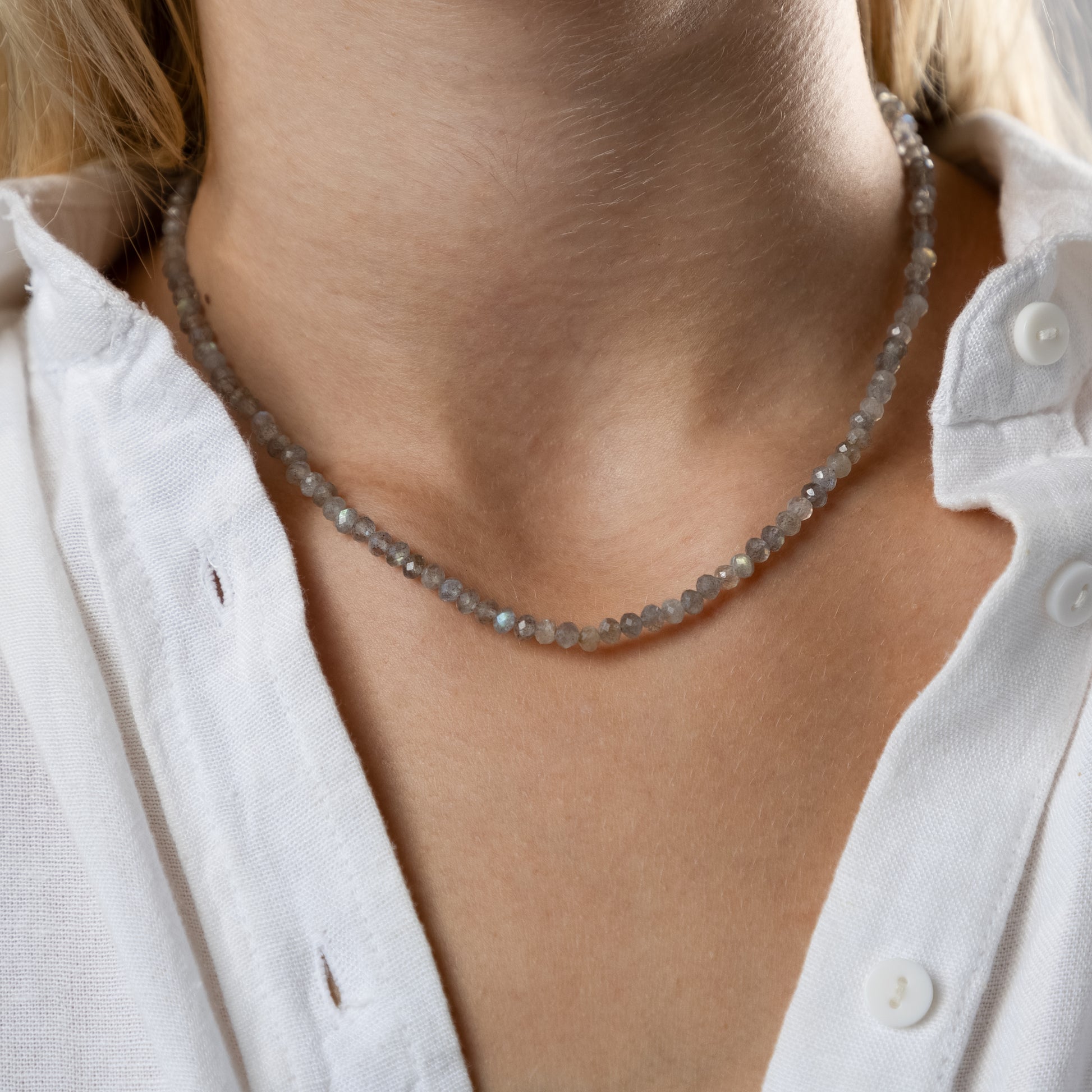 Labradorīta kaklarota (Labradorīts, slīpēta forma, 4mm, 38cm. Aizdare Sudrabs 925.)