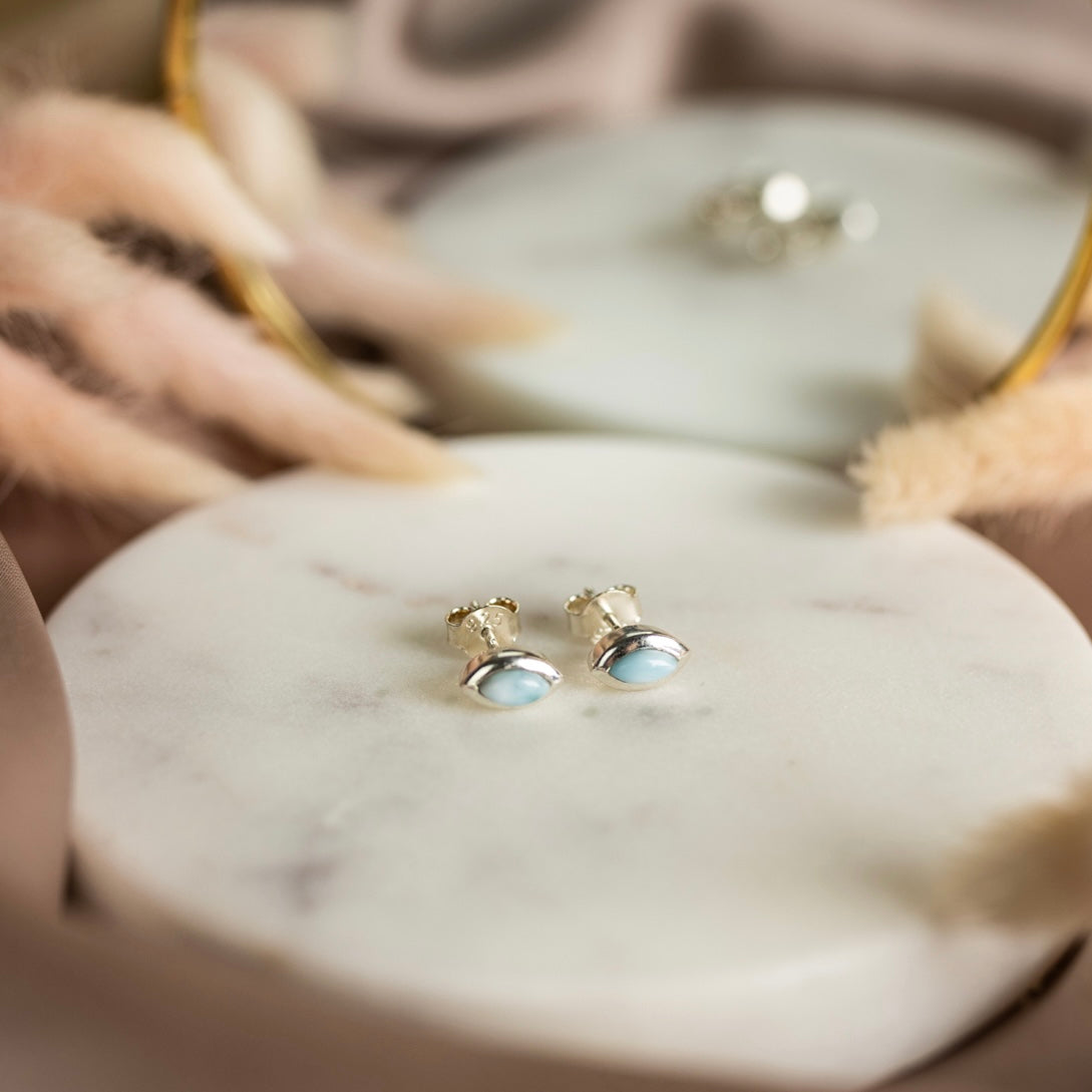 Larimāra sudraba auskari (Larimārs, 925 proves sudrabs)