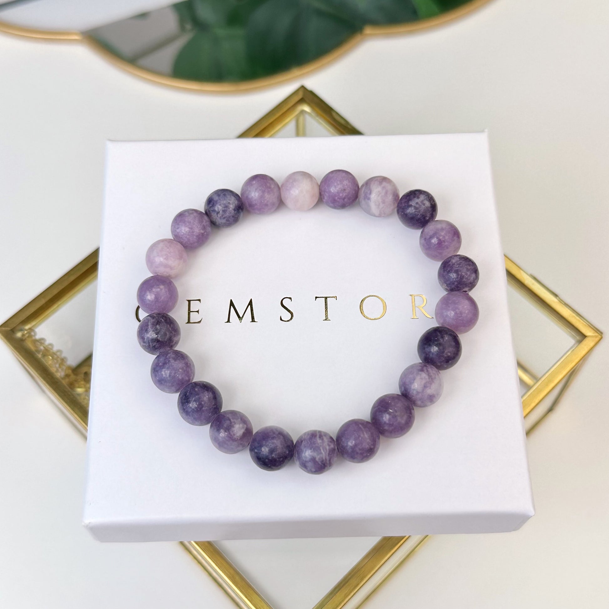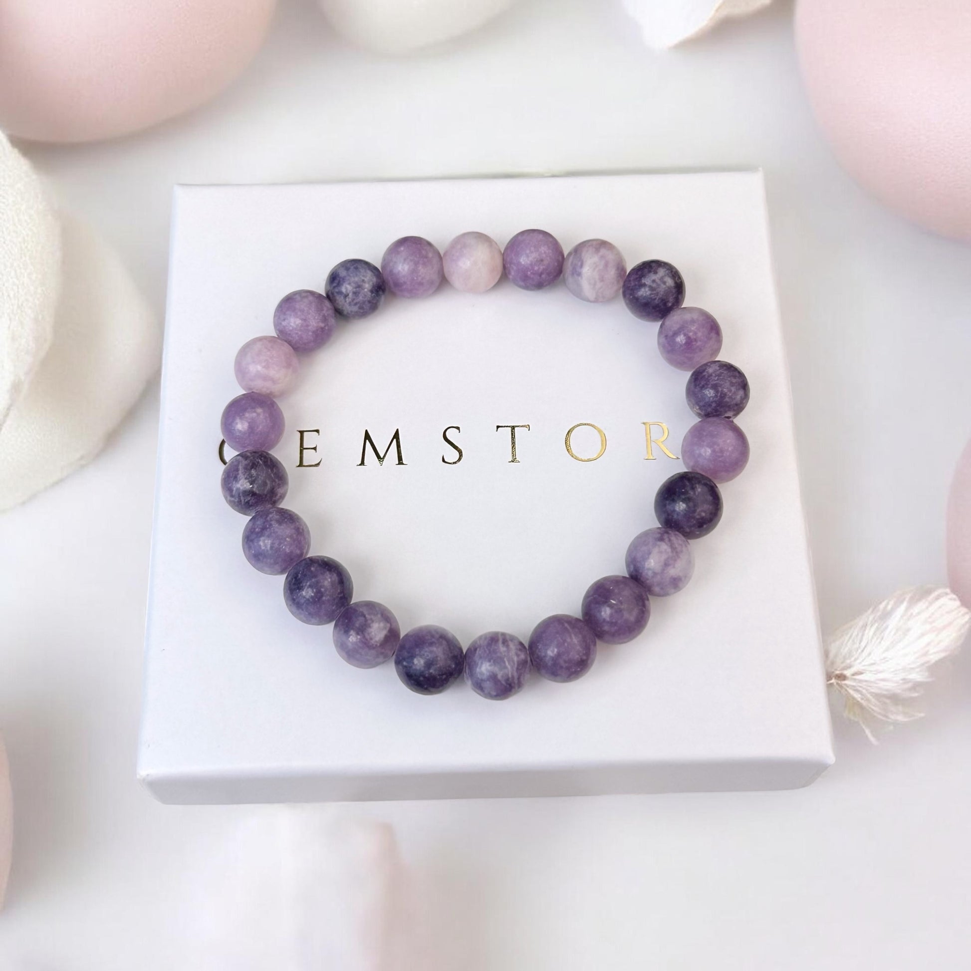 Lepidolīta rokassprādze (Lepidolīts 8mm. Mieram, līdzsvaram un izaugsmei)