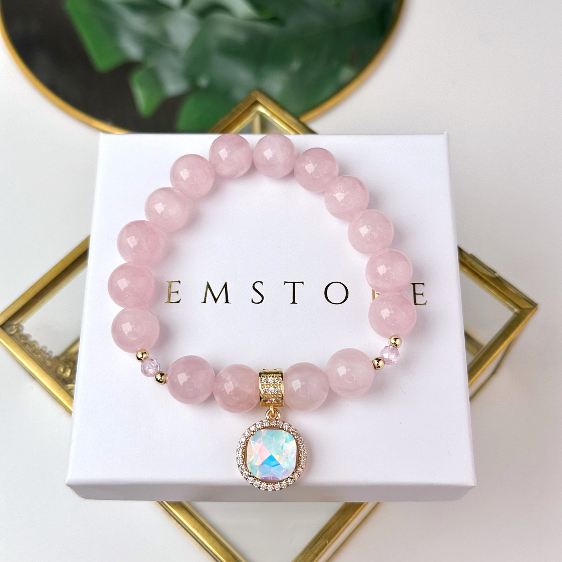 Madagaskaras Rozā kvarca aproce ar piekariņu (Rozā Kvarcs 10mm)