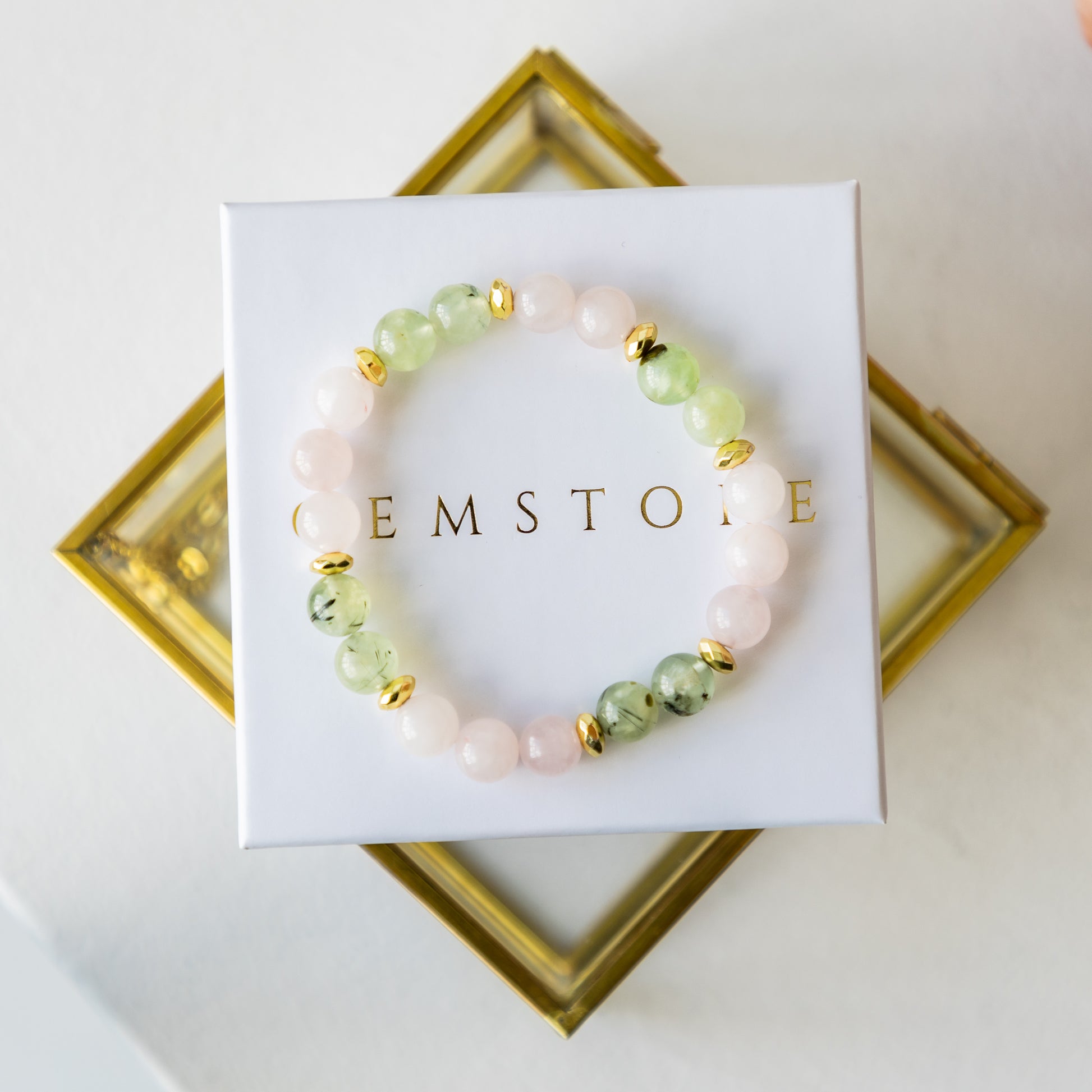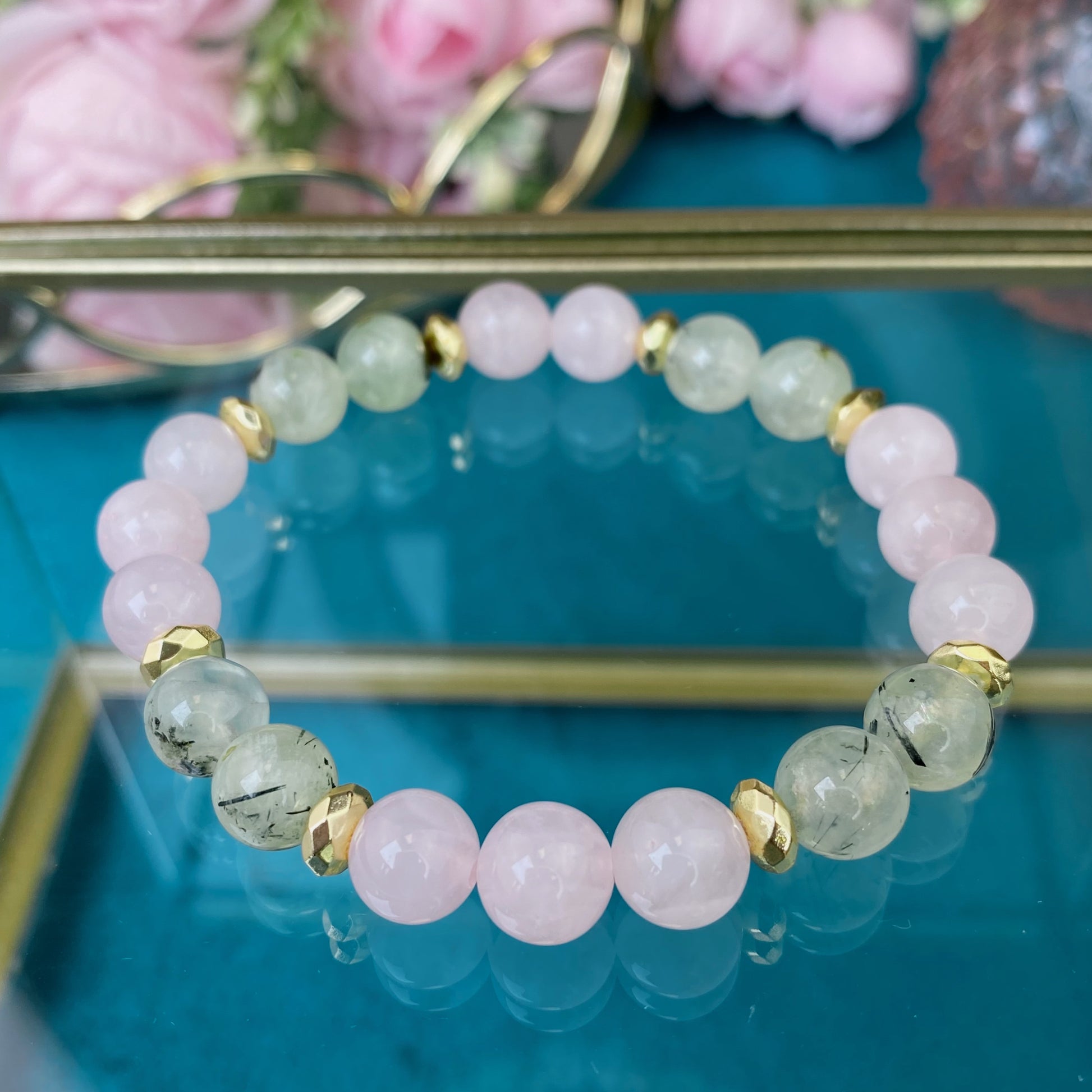 Madagaskaras Rozā Kvarca rokassprādze ar Prenītu (Rozā Kvarcs, Prenīts, 8mm. Mīlestībai, skaistumam un enerģijai.)