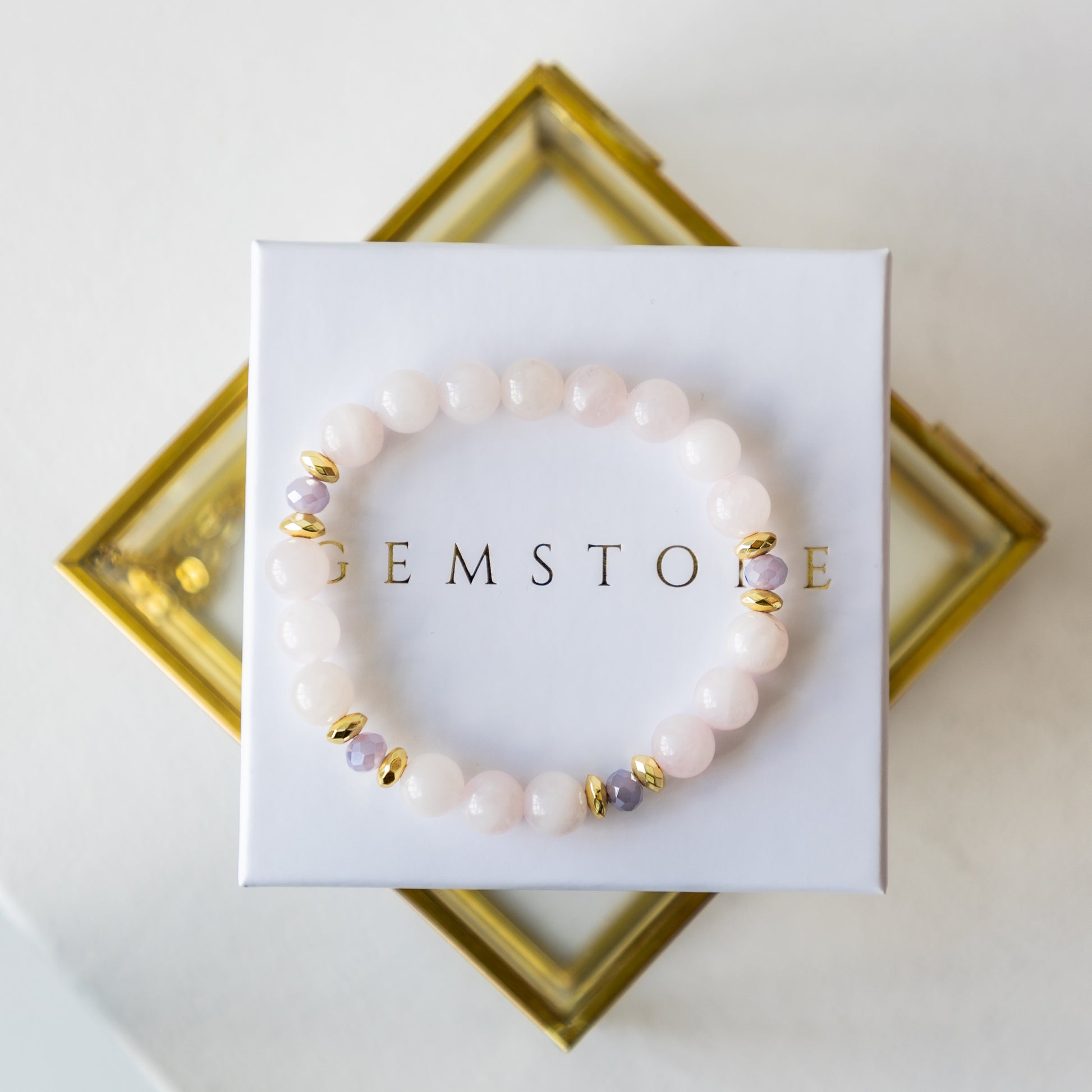 Madagaskaras Rozā Kvarca rokassprādze (Rozā Kvarcs, 8mm. Mīlestībai, skaistumam un veselībai.)