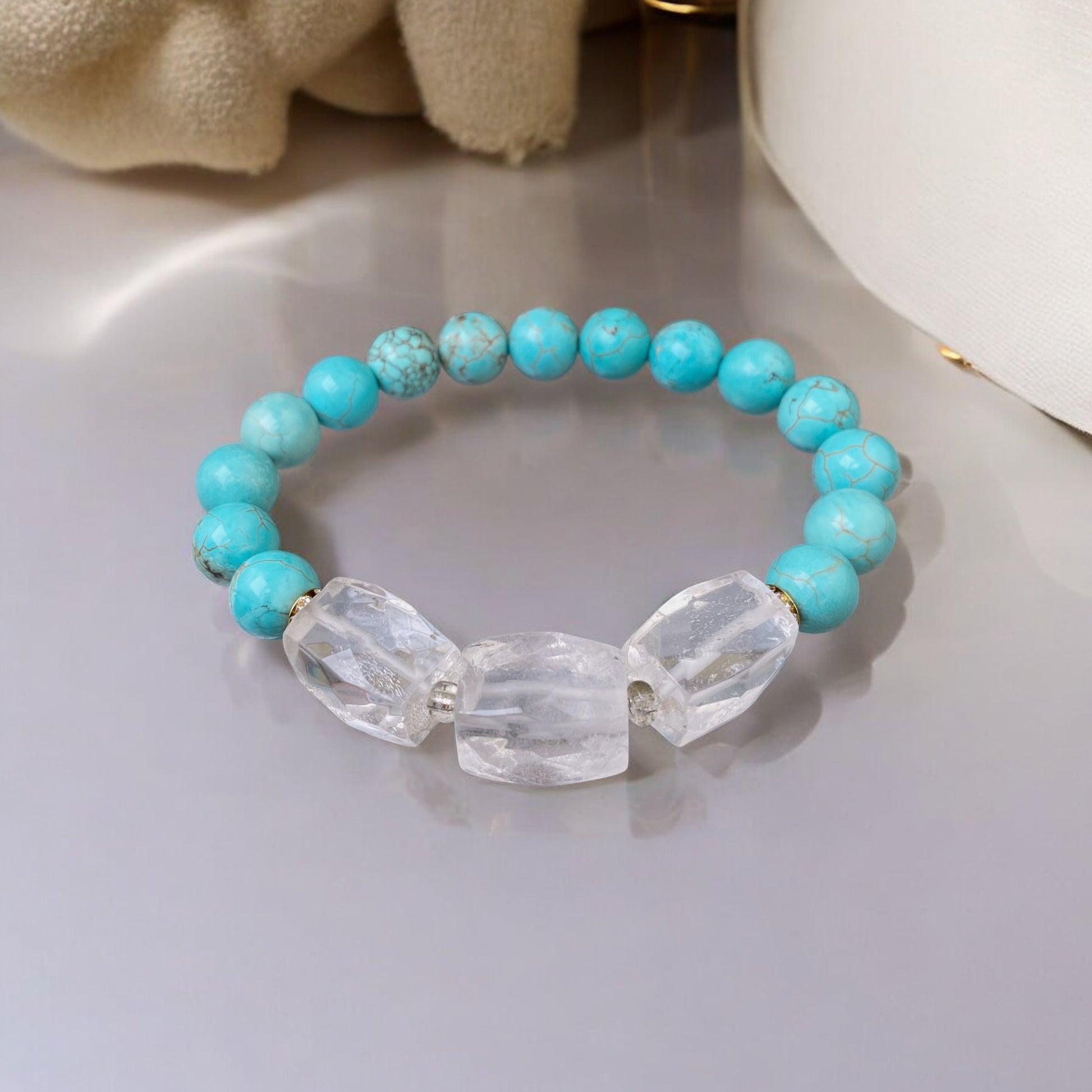 Magnezīta un Kalnu Kristāla rokassprādze (Kalnu Kristāls, Magnezīts tonēts 10mm )