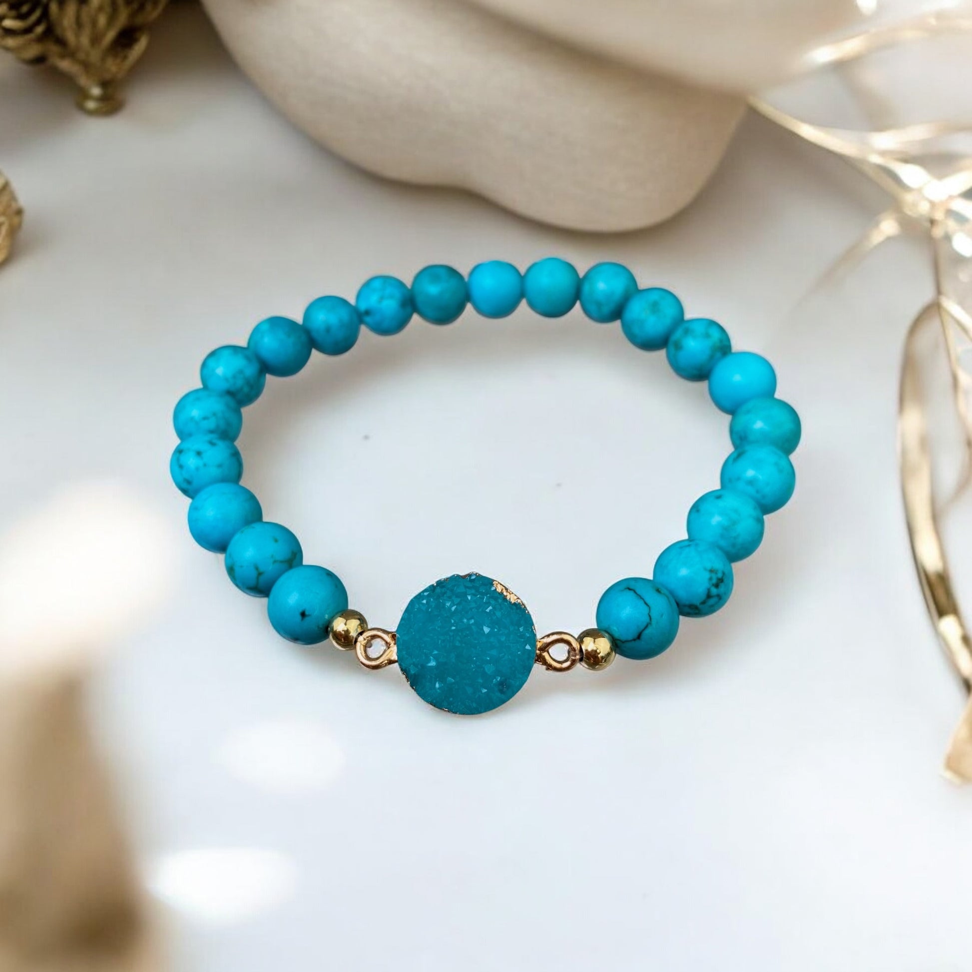 Magnezīta rokassprādze ar Kvarca drūzu (Magnezīts, 8mm)