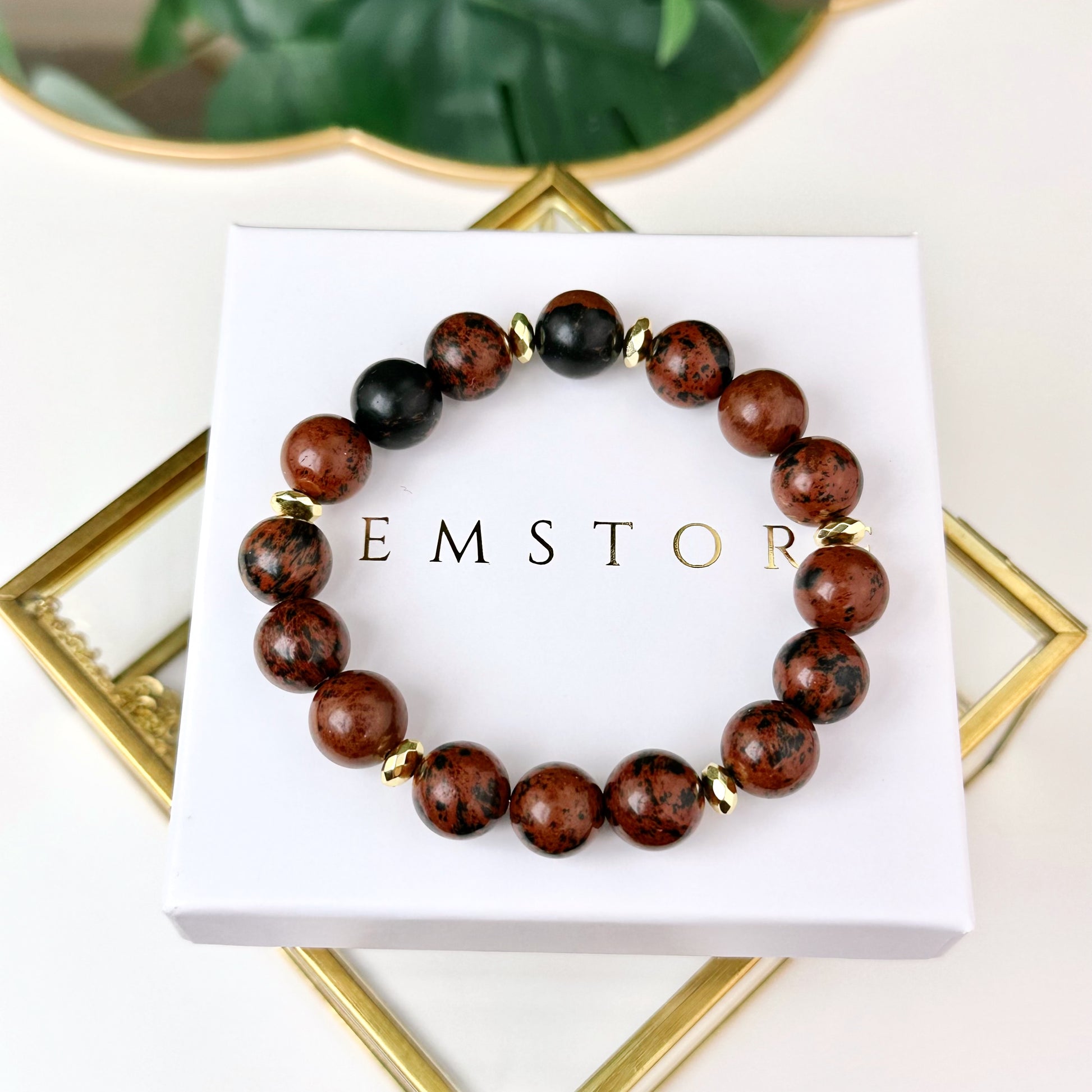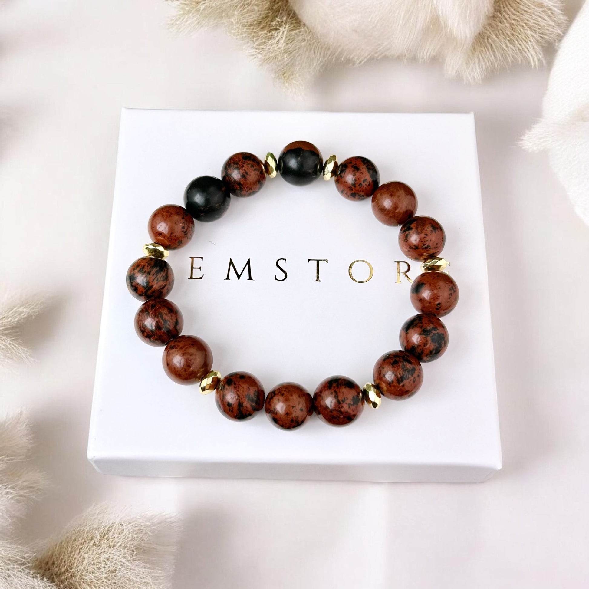 Mahagonijas Obsidiāna rokassprādze (Obsidiāns, 10mm. Stabilitātei, priekam un pozitīvai enerģijai.)