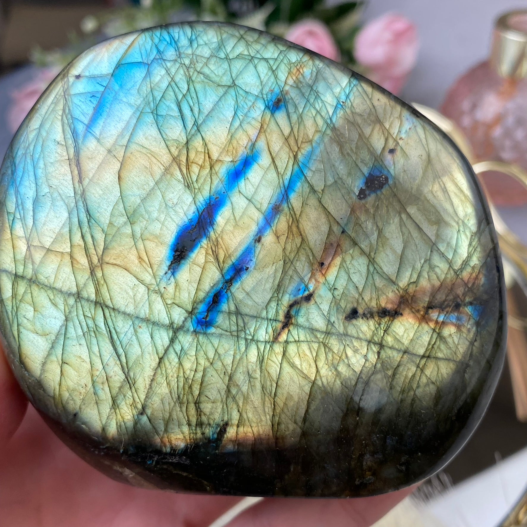 Slīpēts Labradorīts 507g. Augsta kvalitāte.