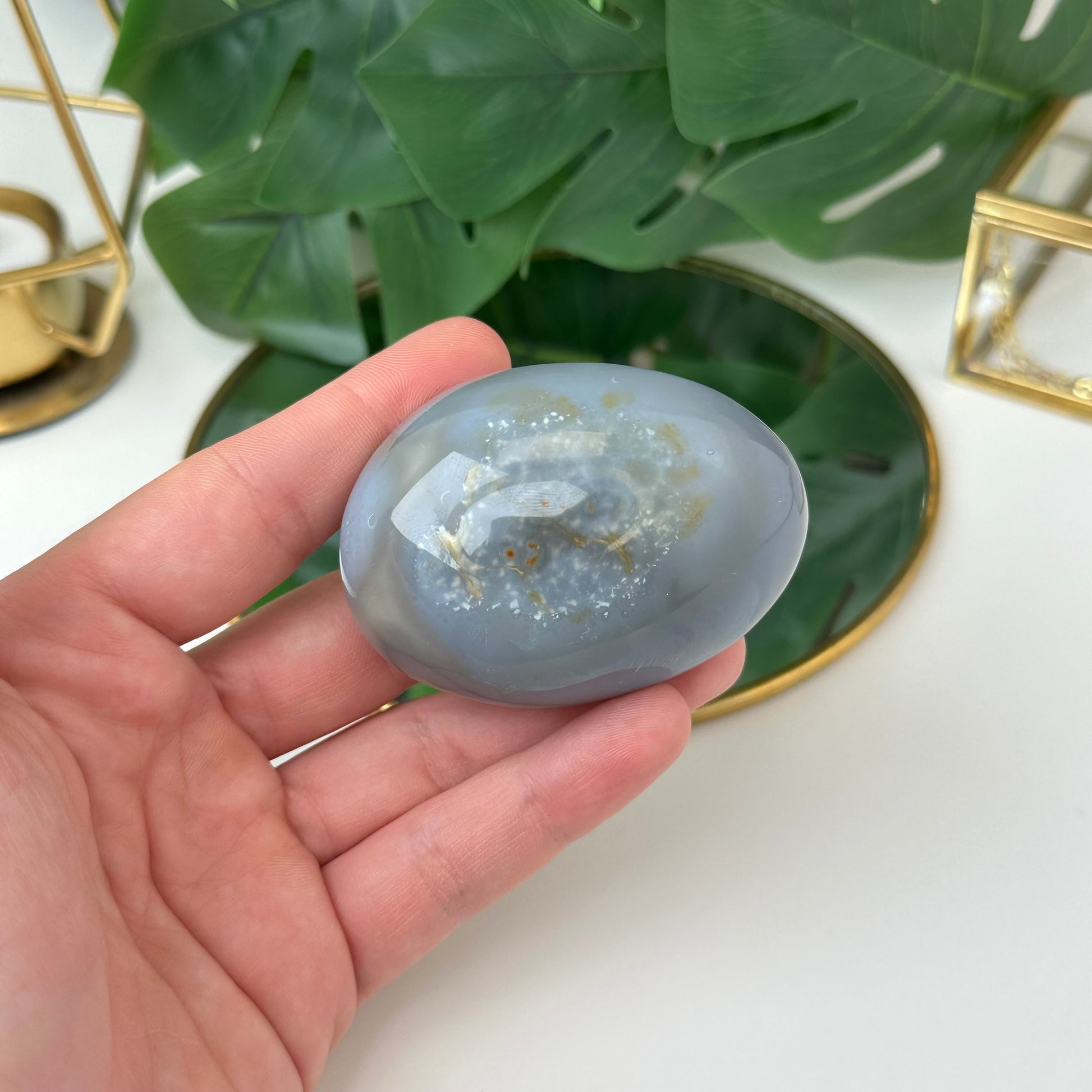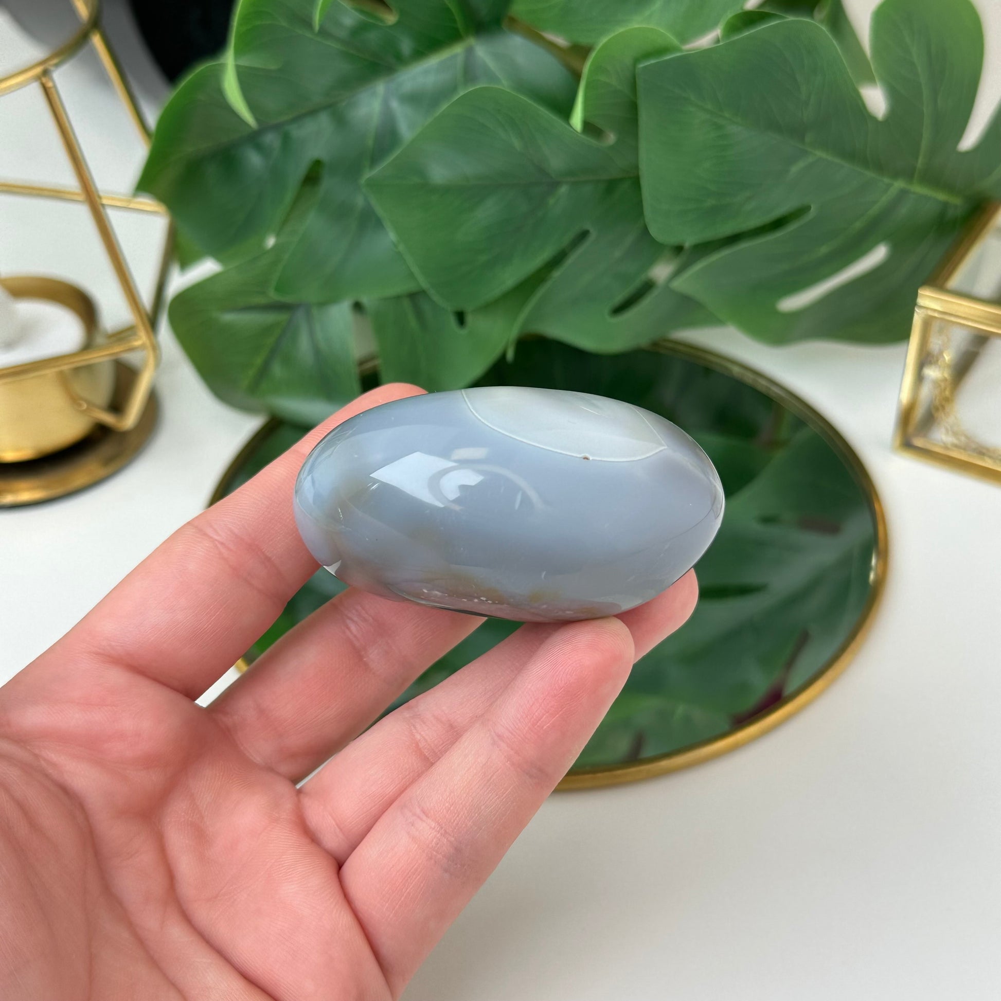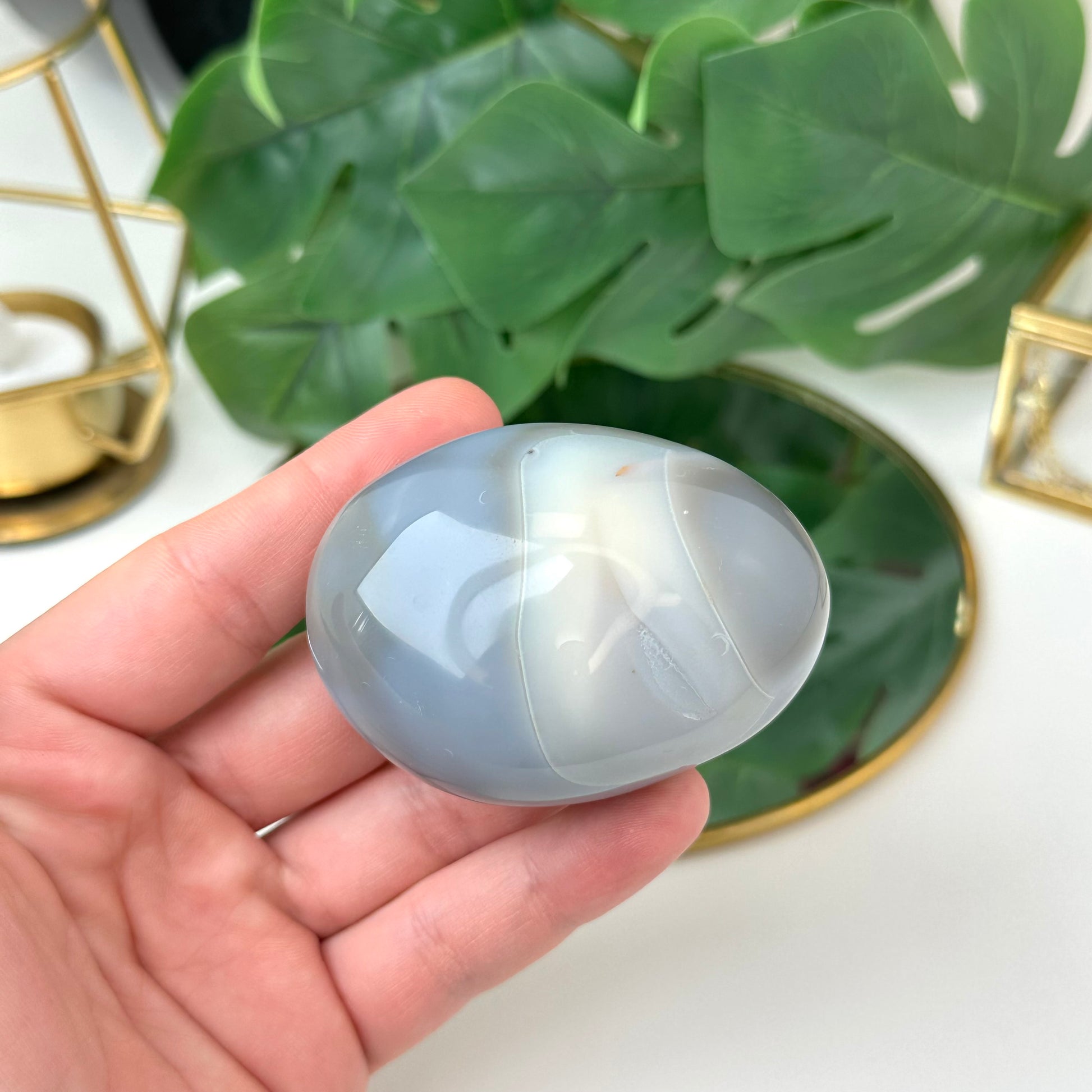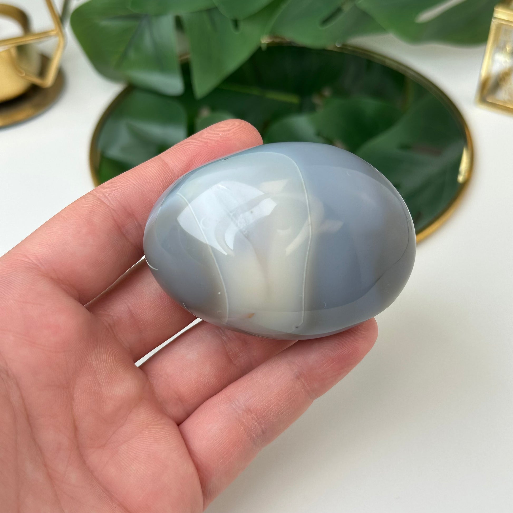 Pelēkais ahāts ir dabisks akmens, kas veidojas no kvarca – viena no visizplatītākajām Zemes minerālvielām. Tas pieder halcedonu grupai, kas nozīmē, ka ahāts ir īpašs, sīkgraudains kvarca paveids ar gludu un blīvu struktūru. Šis akmens veidojas, kad silīcija dioksīds lēnām izgulsnējas vulkānisku iežu dobumos, radot slāņainu rakstu un maigi pelēcīgu, mierīgu krāsu.