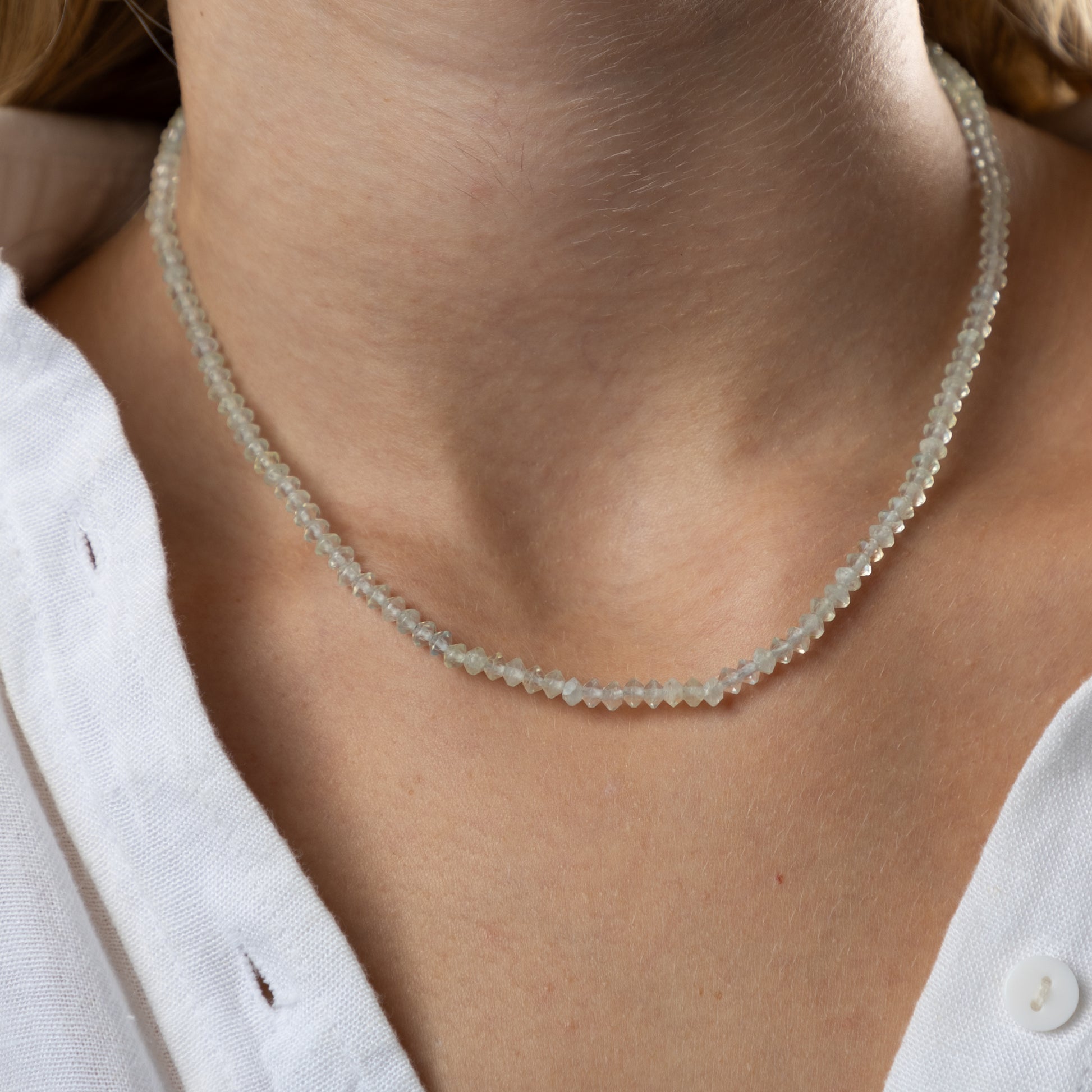 Prenīta kaklarota (Prenīts, slīpēta forma, 4mm, 39cm. Aizdare- Sudrabs 925.)