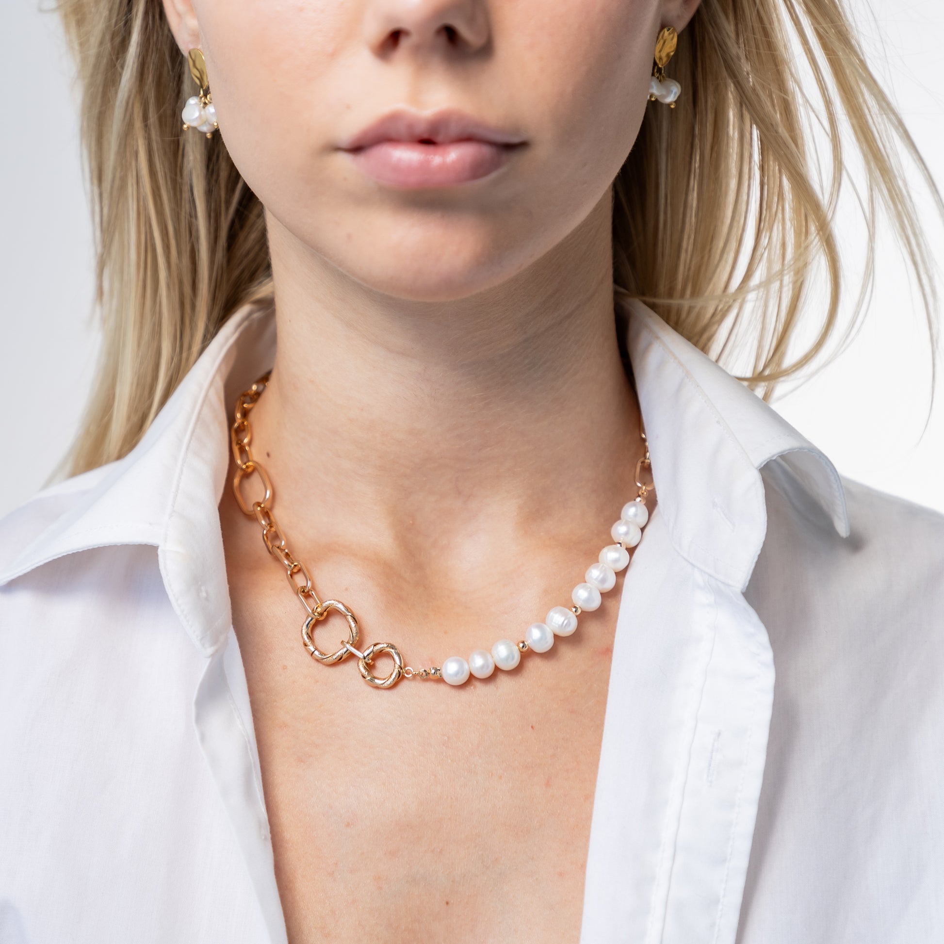 This River Pearl necklace features a stunning gold plated chain with adjustable length of 40cm and an extra 5cm for optimal fit. The chain's length can be adjusted for a comfortable fit, making it a perfect accessory for any outfit.
