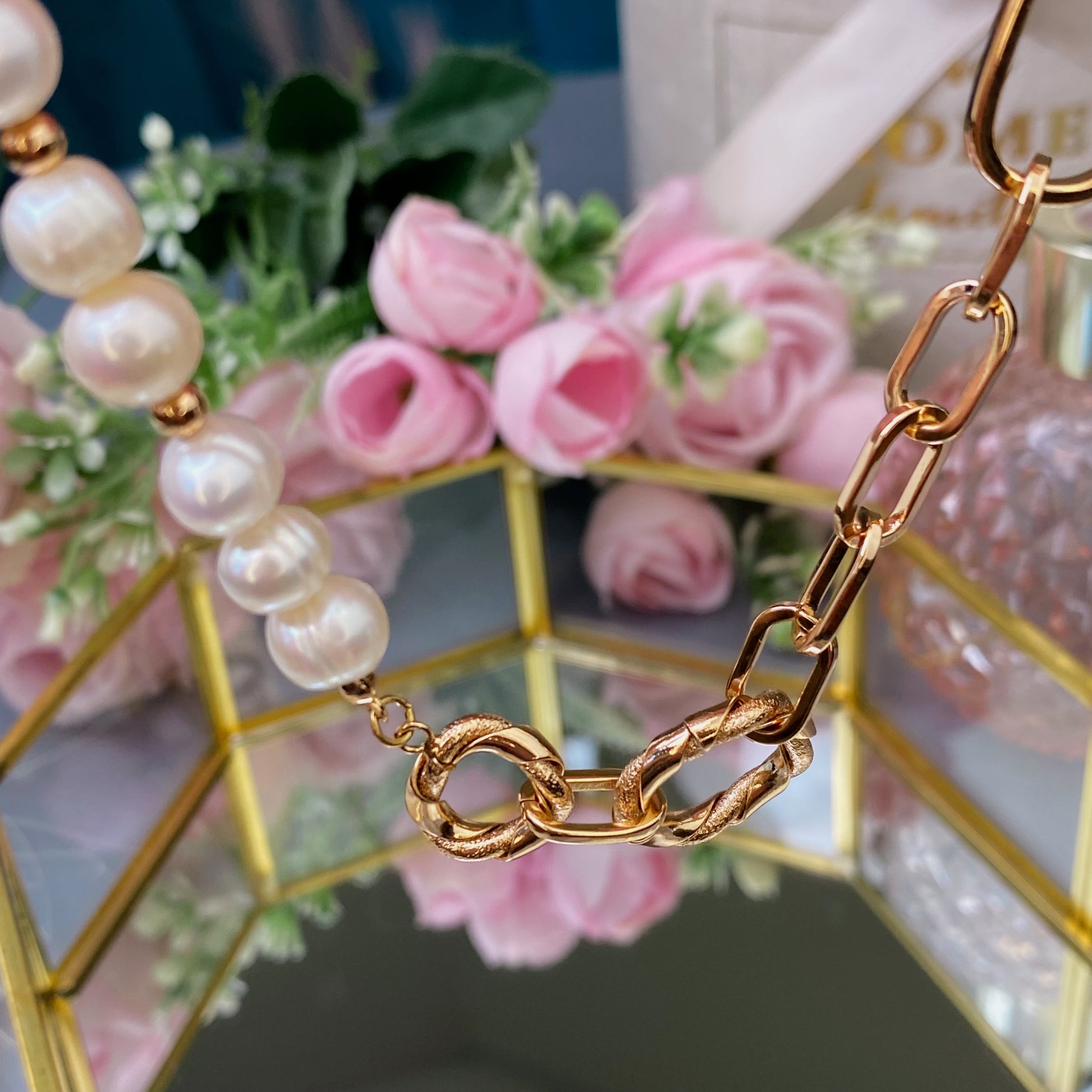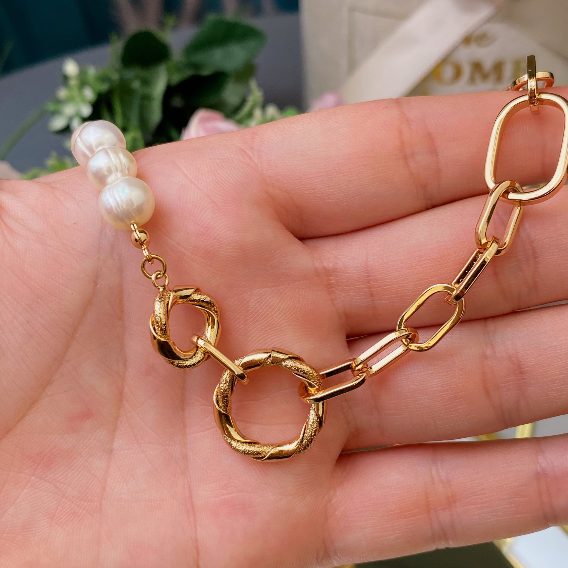 Upes pērļu kaklarota ar apzeltītu ķēdīti (regulējams garums 40cm+5cm)