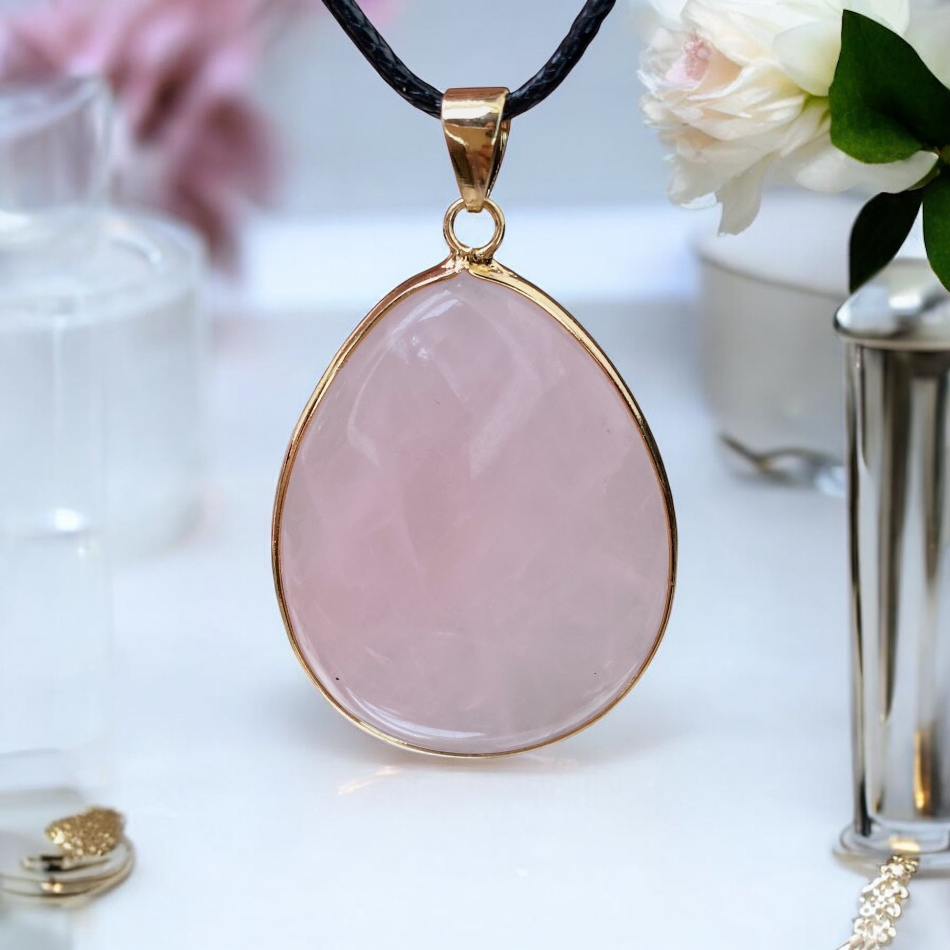 Tiks izsūtīts Rozā Kvarca kulons (1 gab.). Tā kā katrs eksemplārs ir unikāls, tas var nedaudz atšķirties no attēlā redzamā.