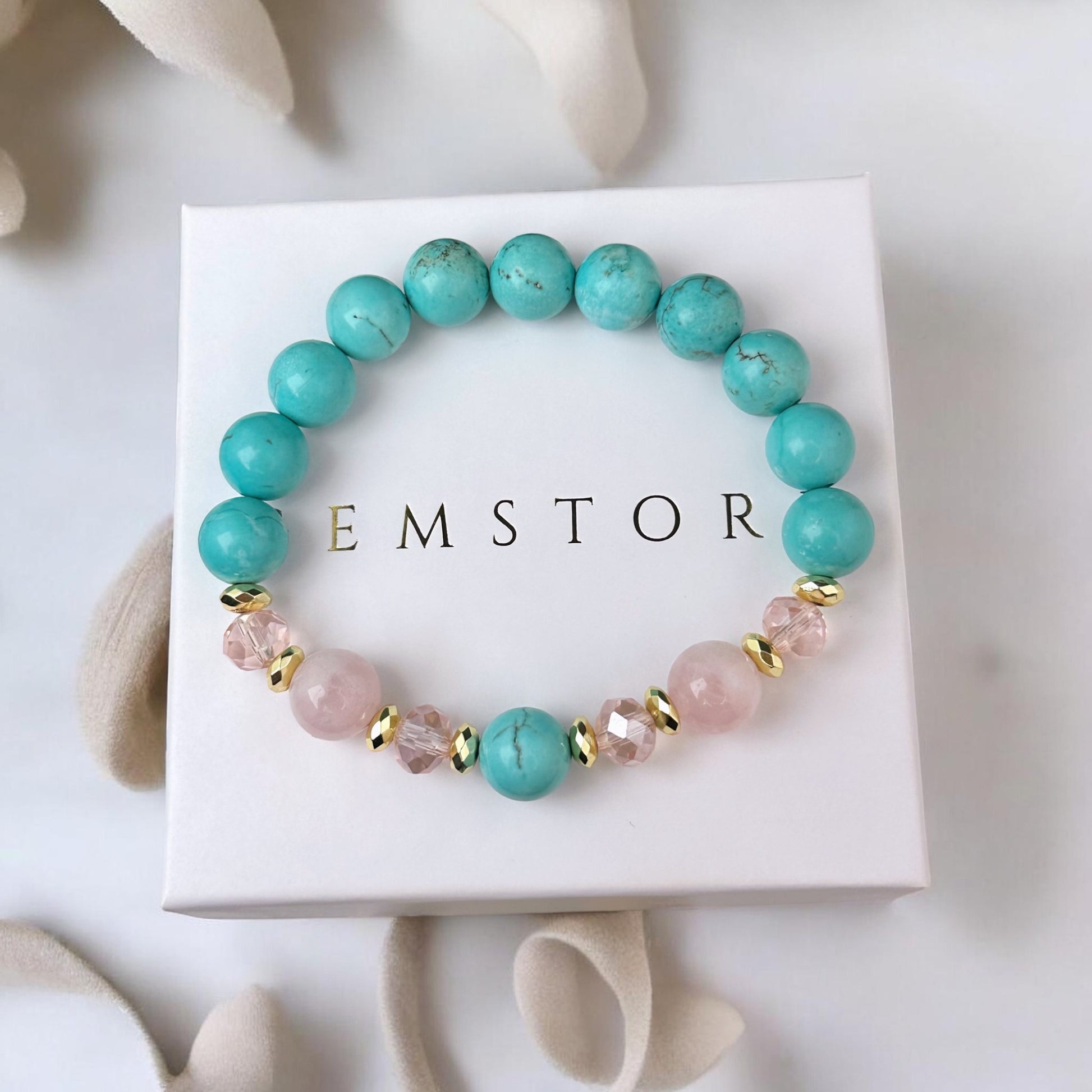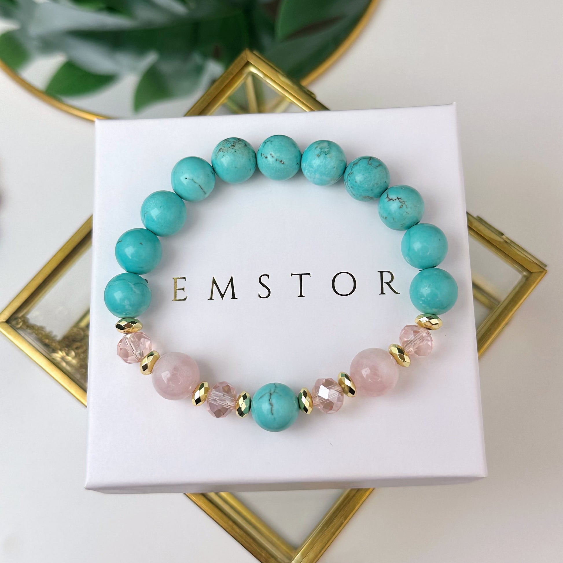 Rozā Kvarca un Magnezīta aproce (Rozā Kvarcs, Magnezīts (tonēts), 10mm)